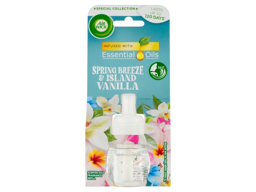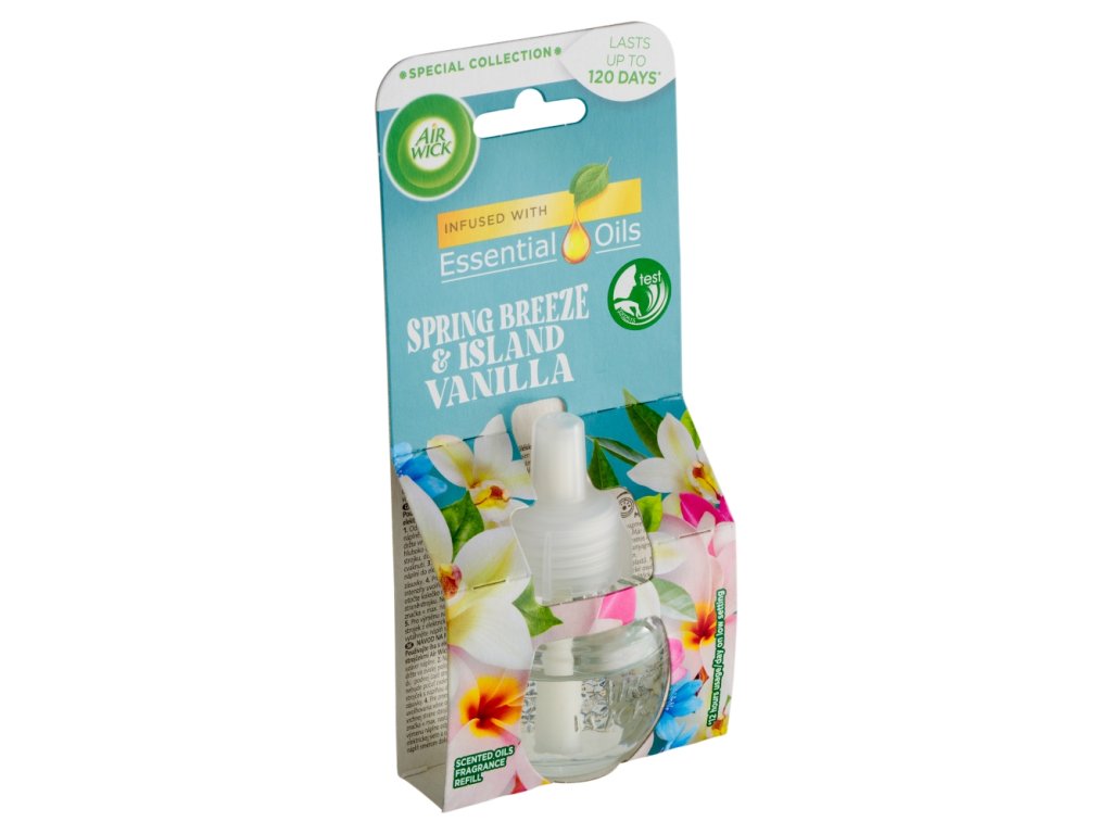 Náhradní náplň do elektrického osvěžovače vzduchu s vůní jarního vánku a vanilky. Obsahuje přírodní esenciální oleje.