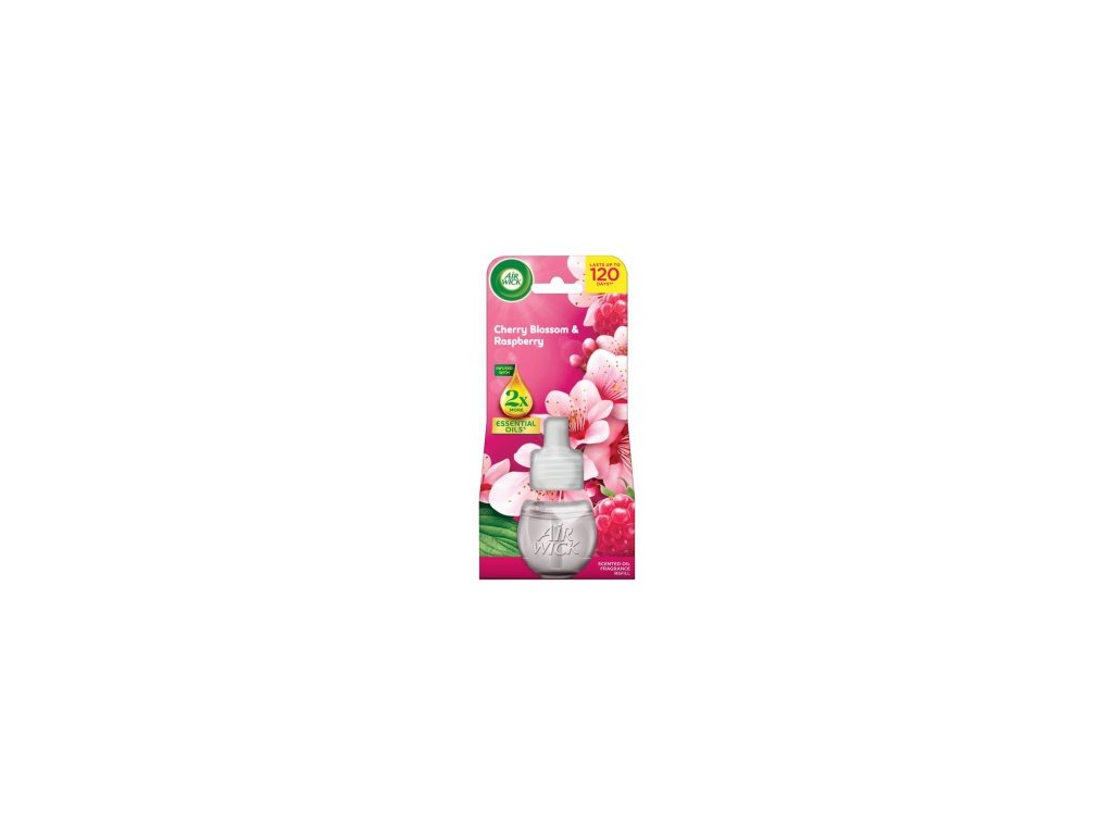 Air Wick Essential Oils Cherry Blossom & Raspberry - Třešňový květ a malina, elektrický osvěžovač náhradní náplň 19 ml