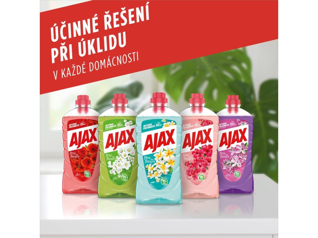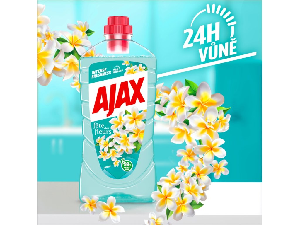 Čistící prostředek s vůní jasmínu od značky Ajax na všechny plochy v domácnosti.