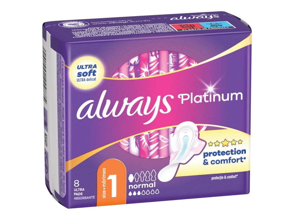 Hygienické vložky Always Platinum Ultra Normal Plus (vel. 1) poskytují větší komfort a lepší ochranu (v porovnání s vložkami Always Ultra). Díky 1 000 hebkých mikropolštářků, které brání protékání po stranách vložky, a vylepšenému jádru zajišťují Always Platinum nejlepší ochranu a komfort od Always.