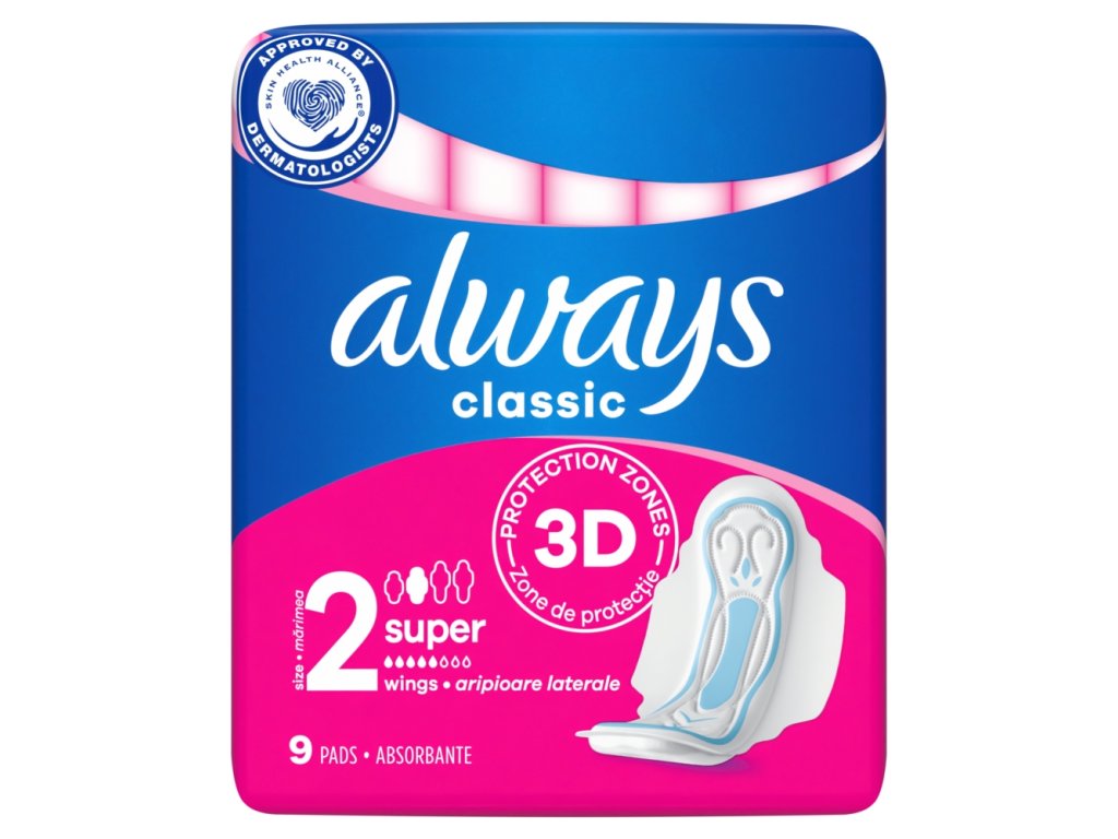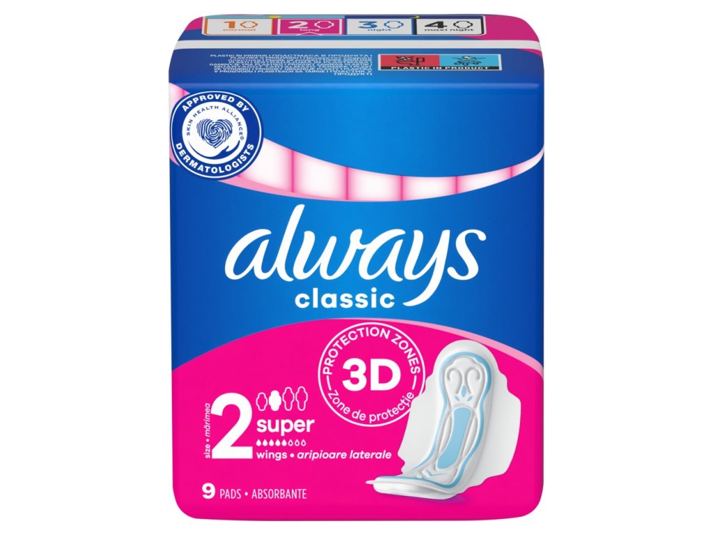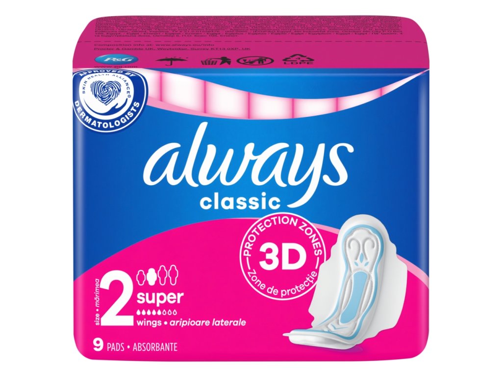 Always Classic Maxi hygienické vložky poskytují bezpečnou a diskrétní ochranu v průběhu celého menstruačního cyklu. Absorpční jádro obsahuje speciální materiál, který rychle absorbuje a uzamkne tekutinu uvnitř vložky v množství několikanásobně vyšším než sám váží.
