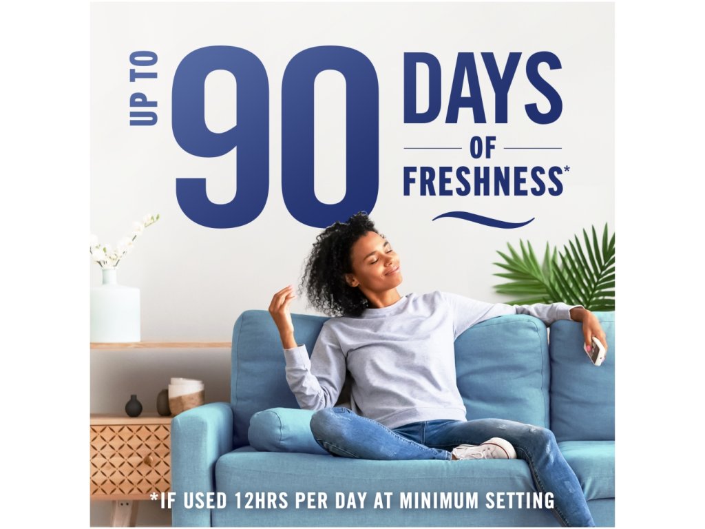Zanechává příjemnou vůni po dobu až 90 dnů při použití 12 hodin denně na nejnižší úroveň odpařování