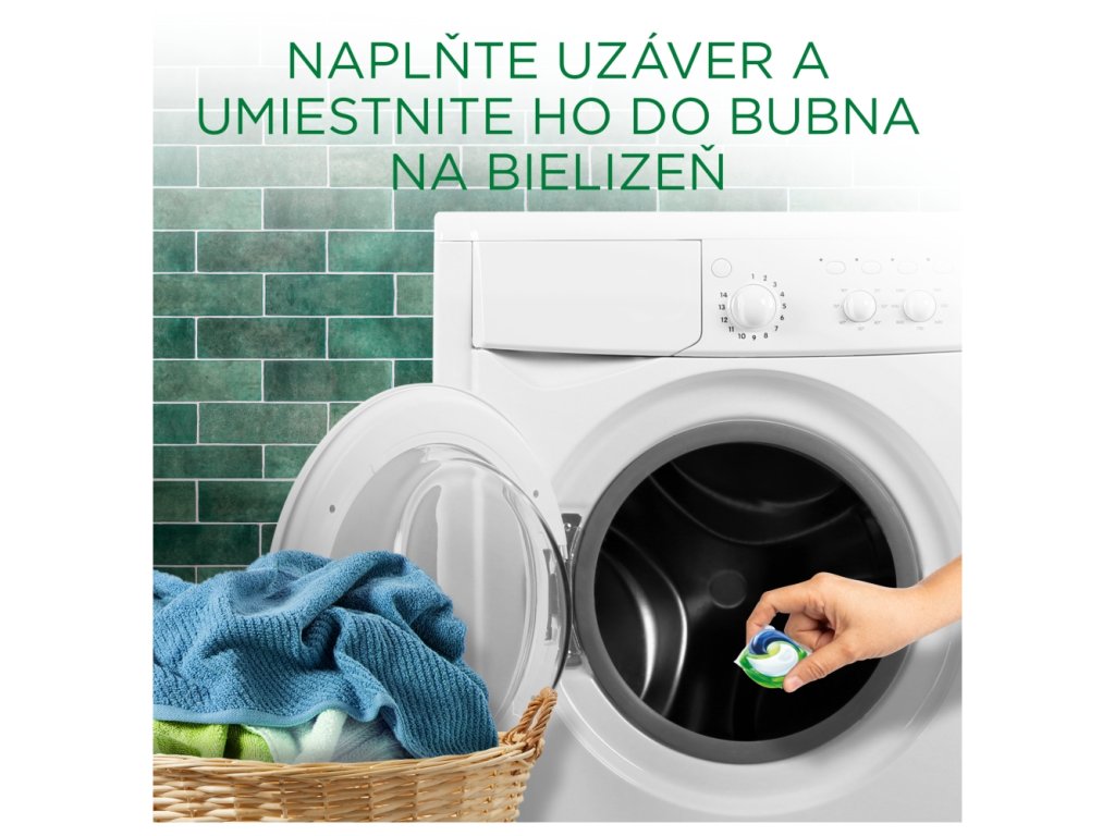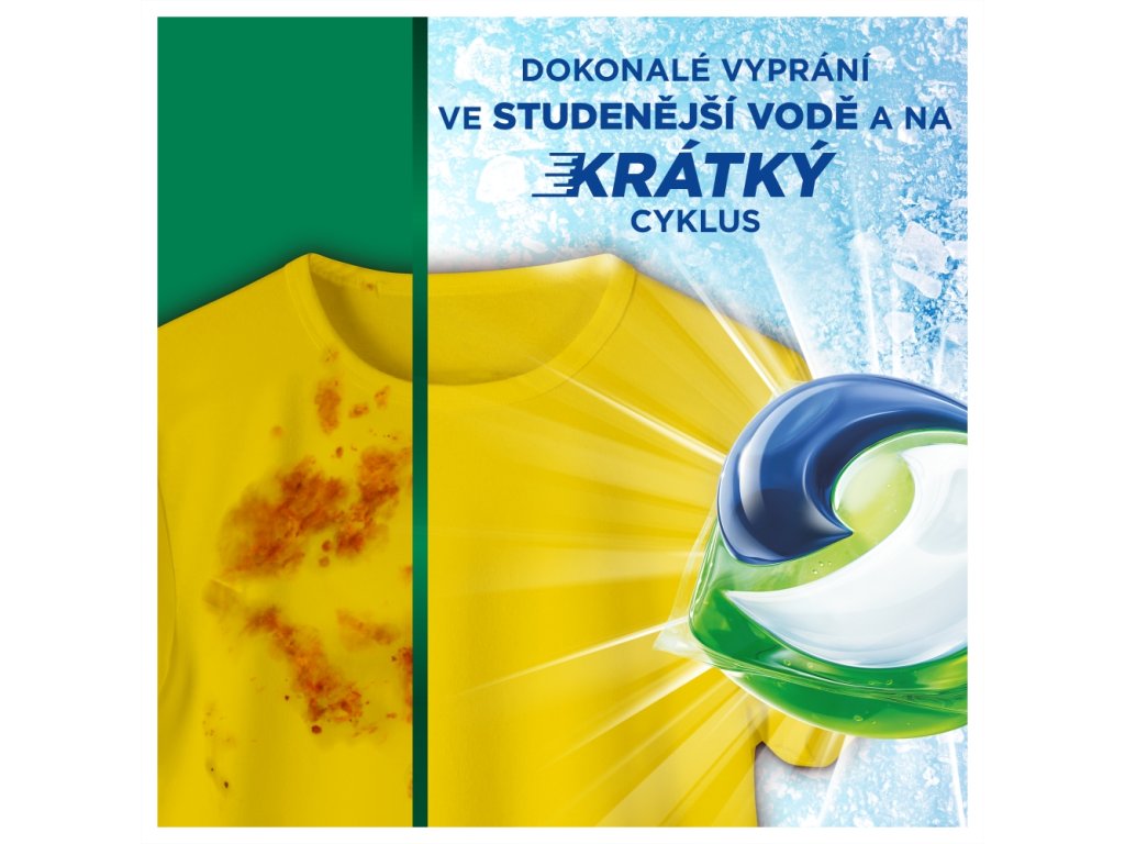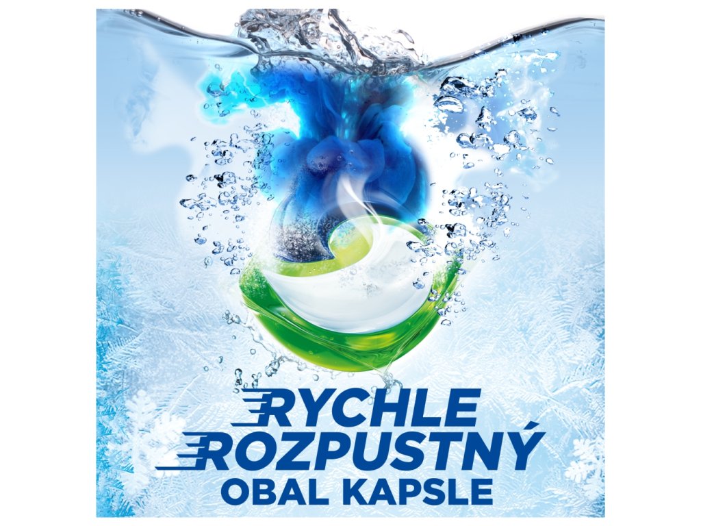 Každá prací kapsle obsahuje tři složky, které čistí prádlo, odstraňují skvrny a udržují barvy prádla jasné a živé. Obal kapslí se zcela rozpouští v bubnu pračky a uvolňuje všechny účinné látky, které zvládnou odstranit celou škálou různých skvrn. Díky své praktické skladovosti činí z kapslí skvělého pomocníka na cestách.