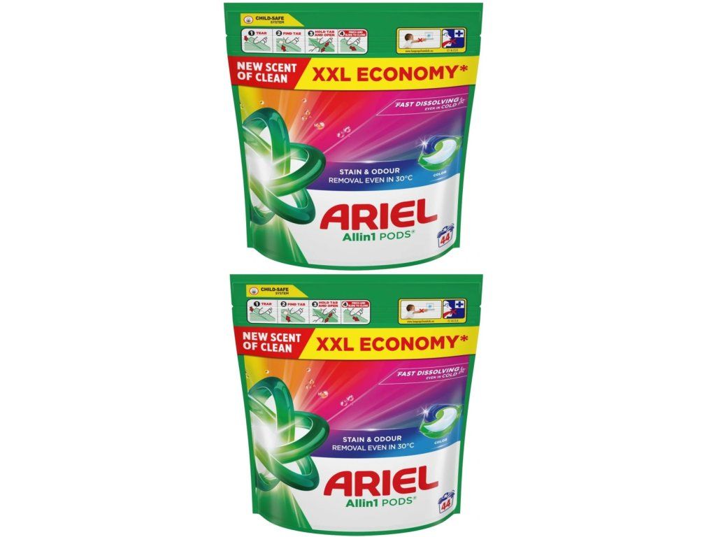 Ariel kapsle Color představují praktické a vysoce účinné řešení pro praní barevného prádla. Díky unikátní vícekomorové technologii obsahuje každá kapsle koncentrované složky, které se aktivují až při kontaktu s vodou a zajišťují maximální čisticí výkon.