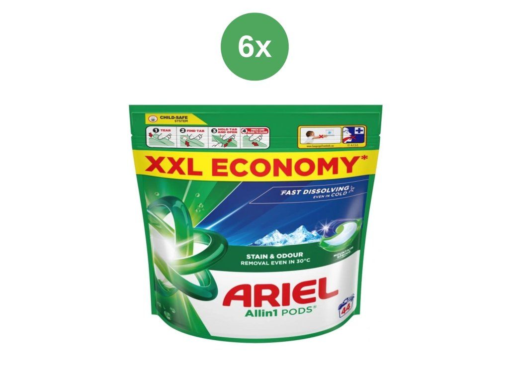 Ariel kapsle Mountain Spring představují moderní a pohodlné řešení pro každodenní praní. Díky technologii All-in-1 obsahuje každá kapsle několik aktivních složek, které se uvolňují postupně během praní a zajišťují perfektní čistotu i svěžest prádla.