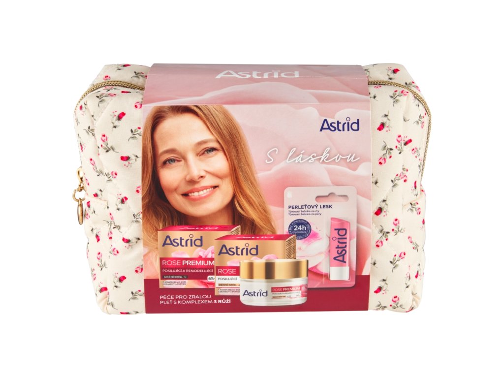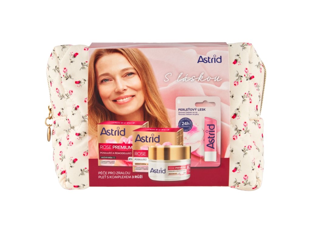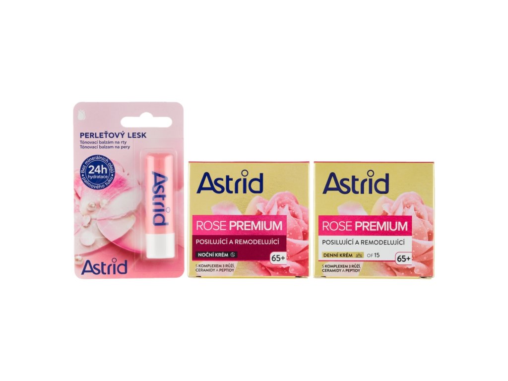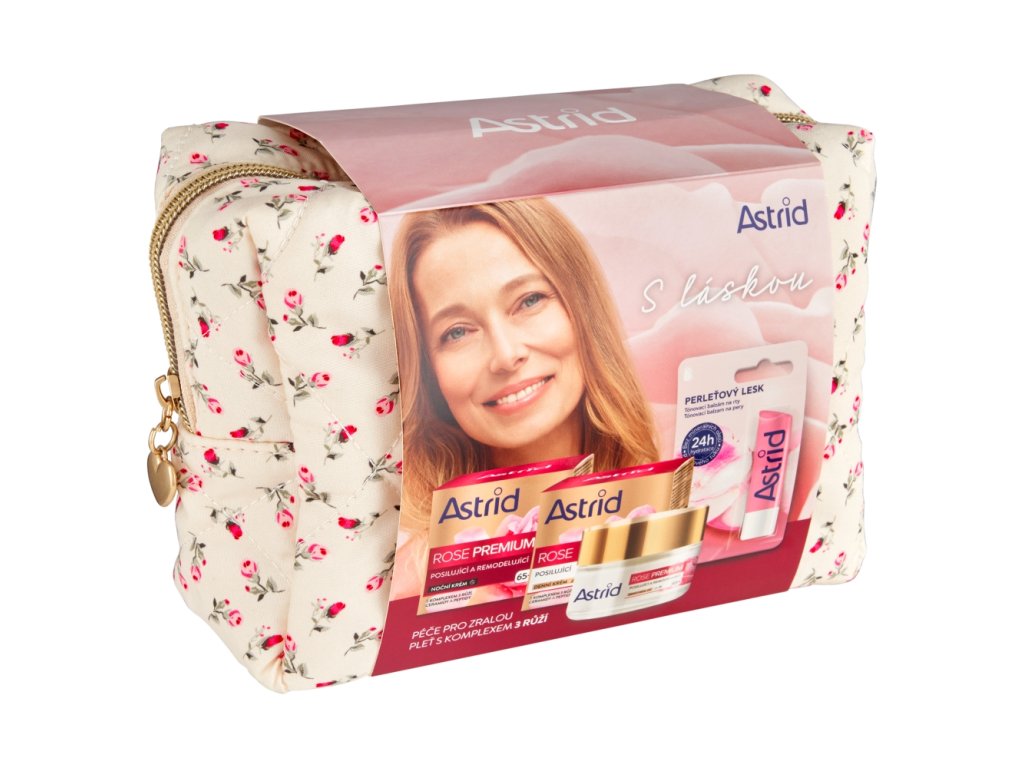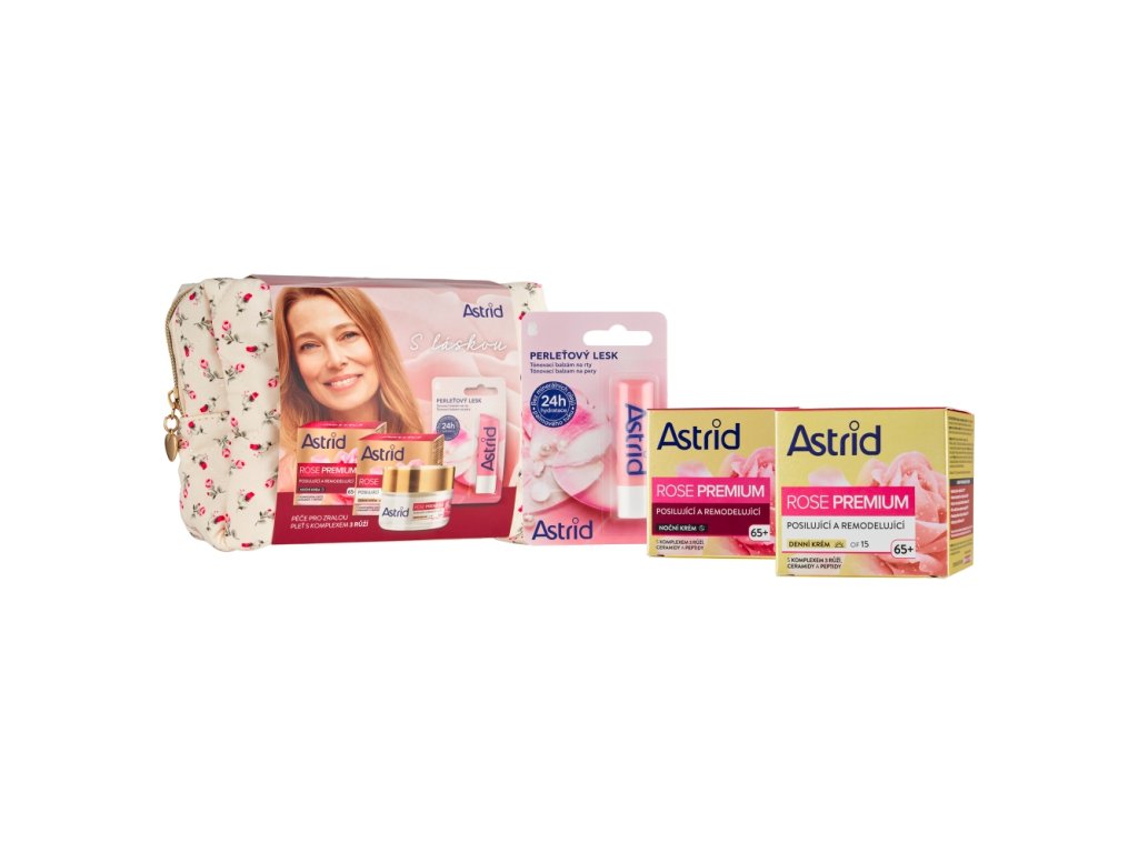ASTRID dárková sada pro ženy ROSE PREMIUM 65+ (denní krém+noční krém+balzám na rty)