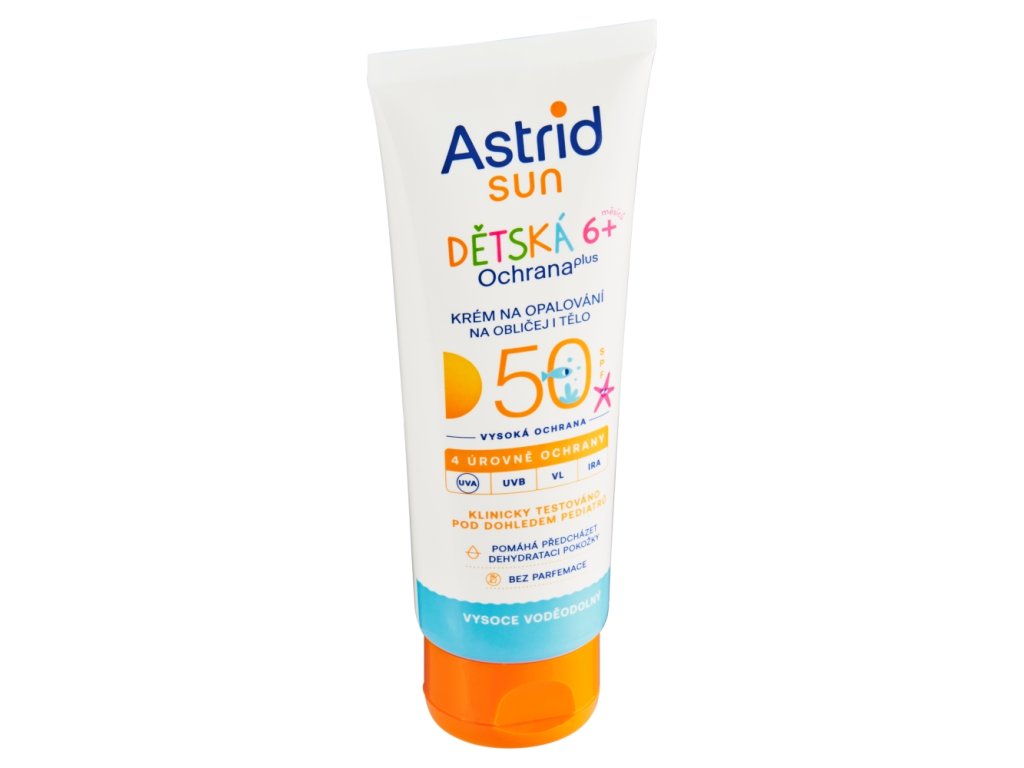Astrid Sun nabízí mnohem více než jen základní ochranu proti slunci. Poskytuje optimální ochranu před 4 hlavními typy slunečního záření (UVA, UVB, VL*, IRA*), které poškozují pokožku. Díky kyselině hyaluronové navíc udržuje pokožku dlouhodobě hydratovanou. Je bezpečný a šetrný pro korálové útesy**. *In vitro test na účinné látce. **V souladu s havajským zákonem o korálových útesech. Neobsahuje oxybenzon a oktinoxát.