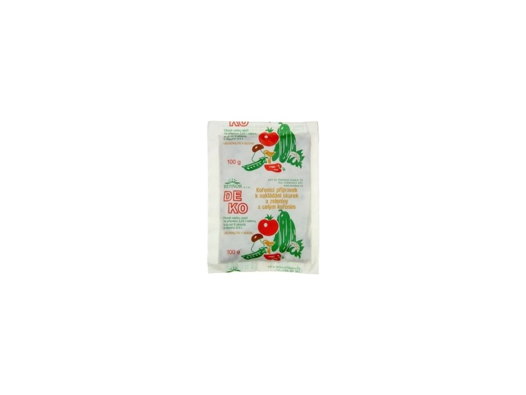 Deko je tradiční receptura od tradičního výrobce nakládacího přípravku DEKO. Obsahuje sůl, kyselinu benzoovou, extrakt koření a celé koření.Doplňkové parametry