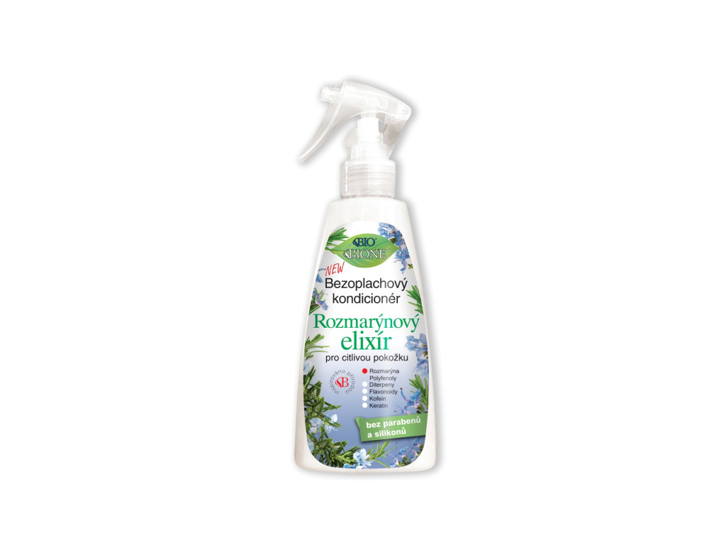 Bezoplachový kondicionér ve spreji z řady Rozmarýnový elixír je lehká vlasová péče určená pro regeneraci, výživu a snadnou úpravu vlasů bez nutnosti oplachování. Díky rozmarýnovému extraktu podporuje zdraví vlasové pokožky, růst vlasů a dodává jim přirozený lesk.