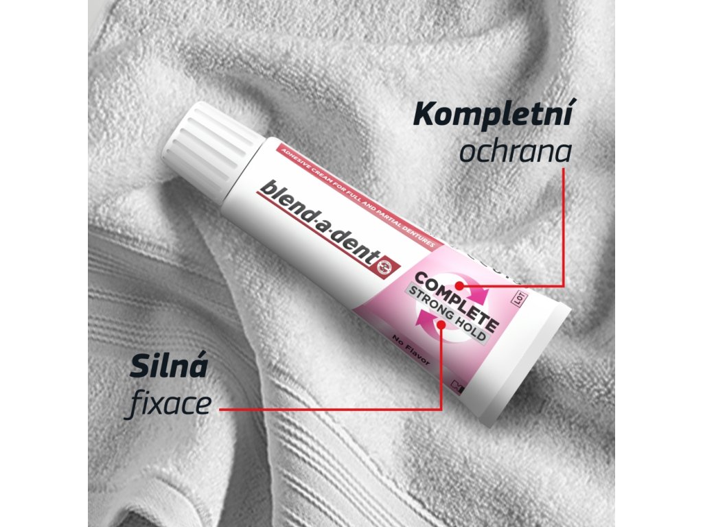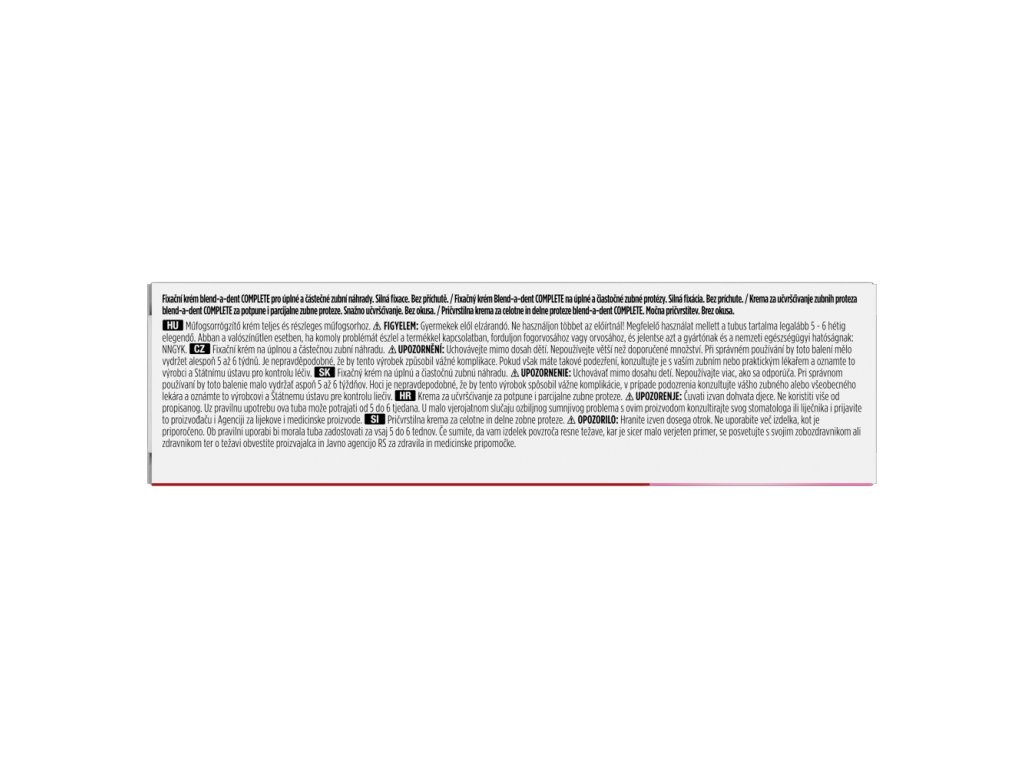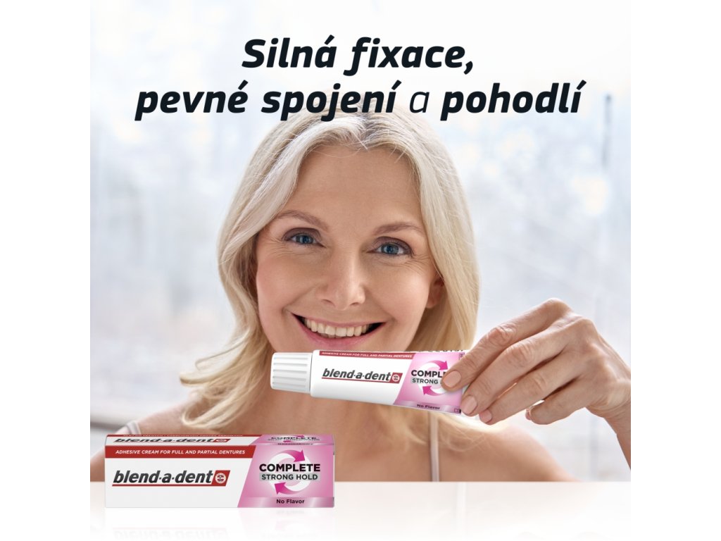 Blend-a-dent Complete fixační krém na zubní náhradu je ideálním řešením pro každého, kdo nechce myslet na to, že nějakou zubní náhradu má. Ať děláte nebo jíte cokoliv, můžete se v klidu spolehnout, že vaše zubní náhrada bezpečně a pohodlně sedí. Poskytuje zubní náhradě stabilitu po celý den, přitom ji ale můžete kdykoli lehce vyjmout.