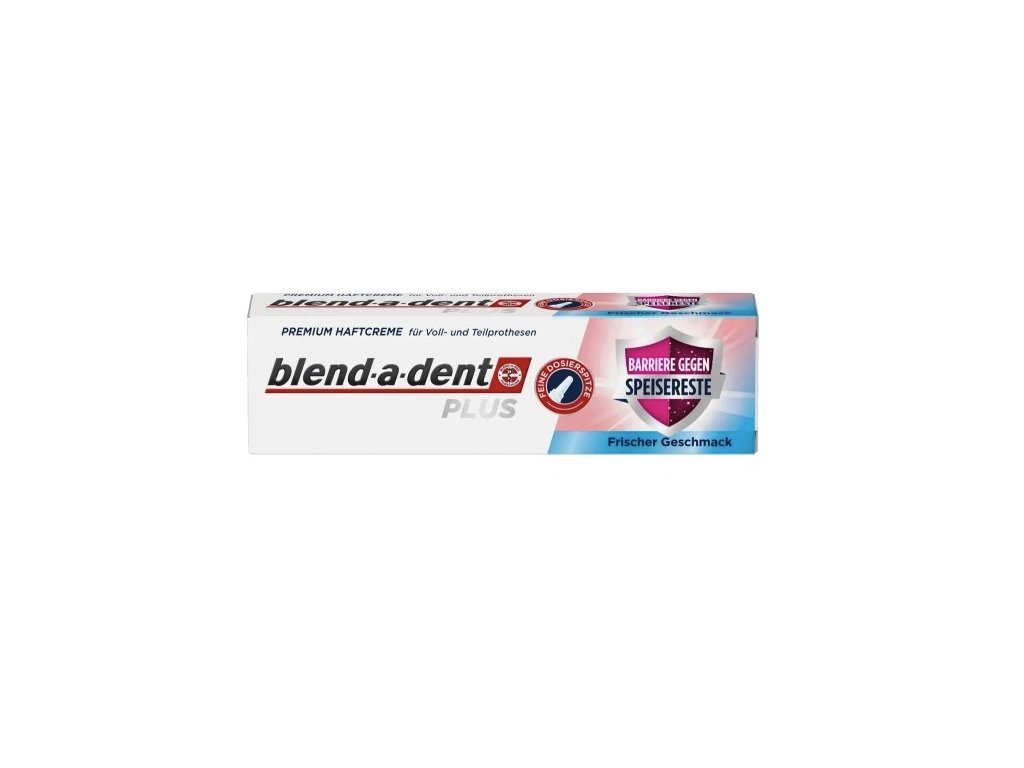 Blend-a-dent PLUS Frisch je prémiový fixační krém na zubní protézy s osvěžující mátovou příchutí, který spojuje dlouhotrvající sílu, pohodlí a svěžest. Zajišťuje pevné uchycení zubní náhrady po celý den, takže si můžete bez obav užívat jídlo, pití i konverzaci.