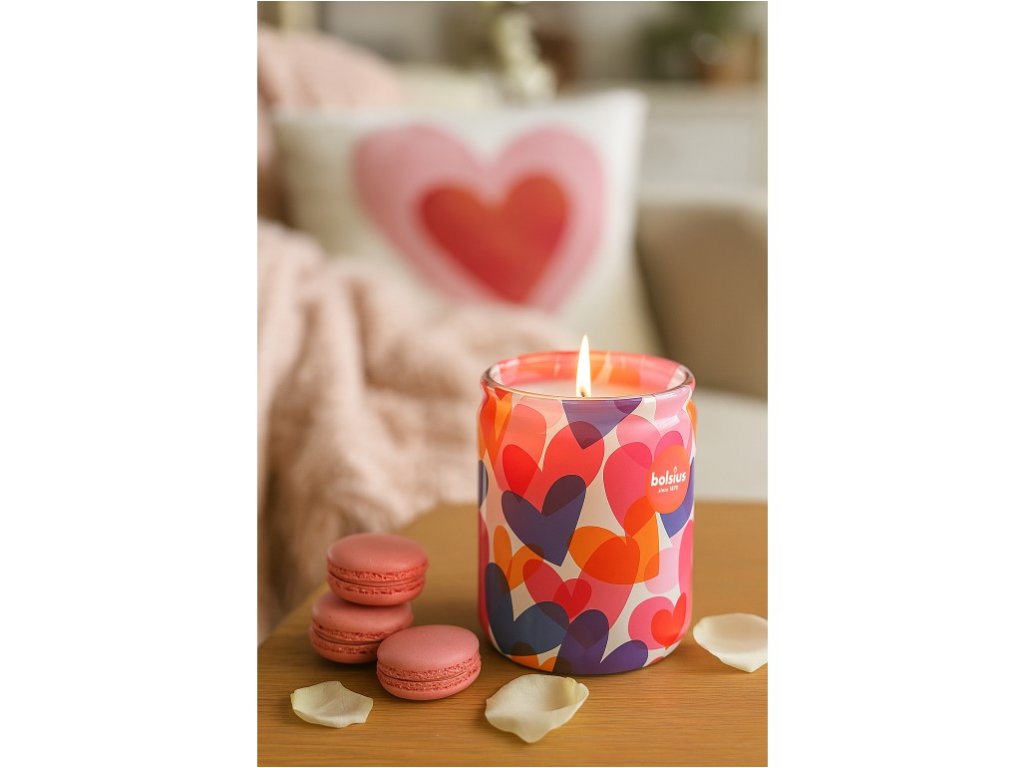 Bolsius Sklo Barevná srdíčka, Levandule, vonná svíčka 68x80mm
