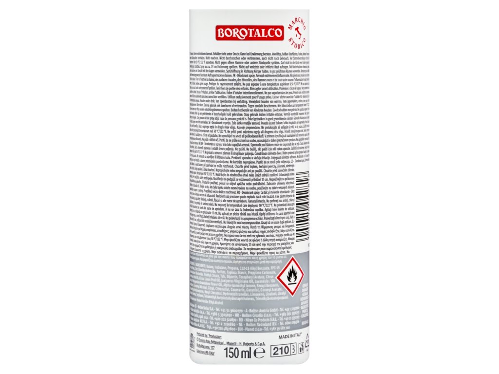 Jemný tělový pudr Borotalco se svou nezaměnitelnou vůní je od roku 1904 stálým společníkem Italů a zajistil si své místo nenahraditelného produktu péče o pleť.