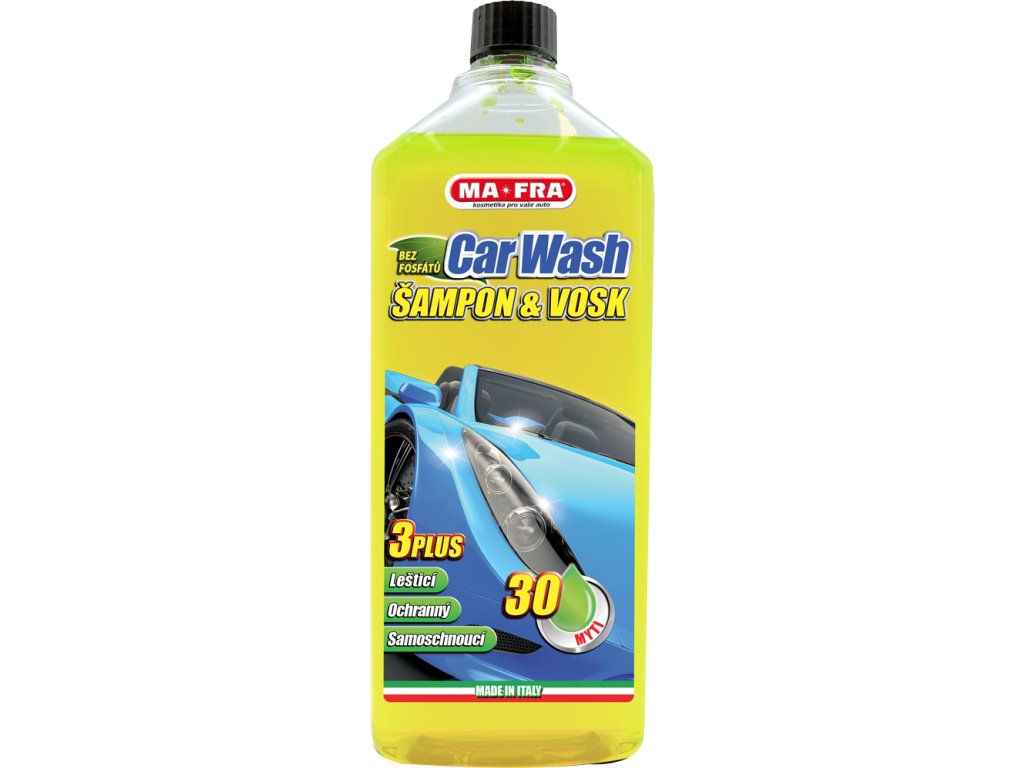 MA-FRA - CAR WASH šampon a vosk 1000 ml - Čistí a leští karosérie vozů. Vytváří ochranný film s efektem Hydro Speed. Příjemně voní a vydrží na 25 mytí.Doplňkové parametry