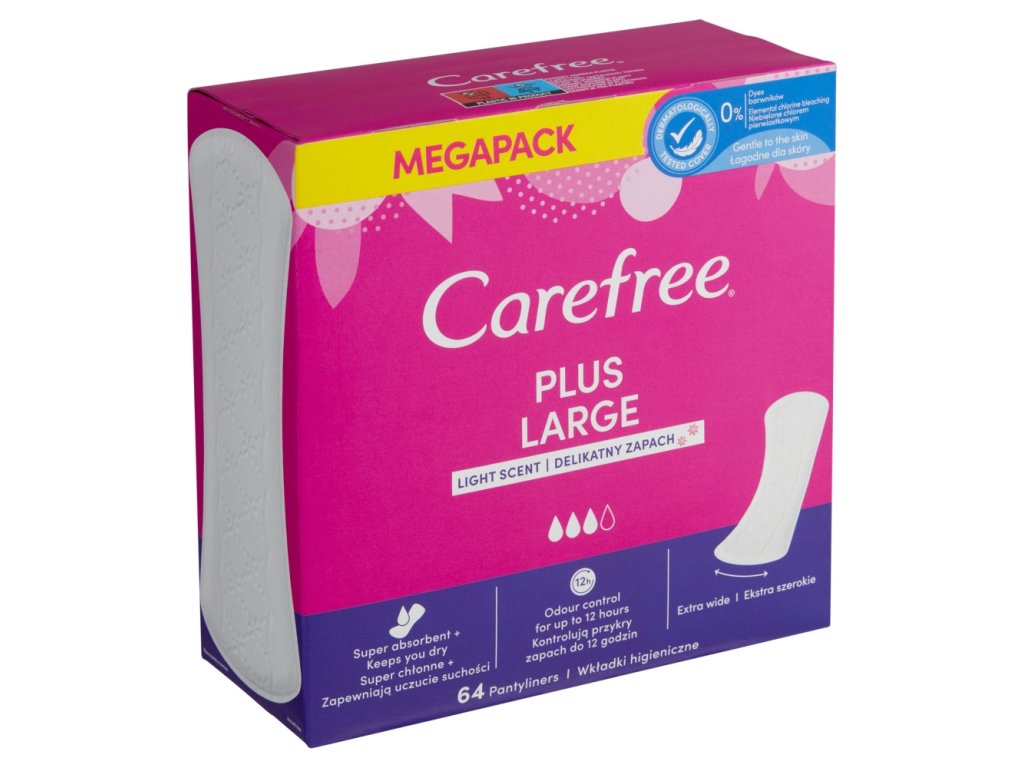 Maximální pohodlí a 100% spolehlivá ochrana při menstruačním cyklu. Dámské hygienické vložky Carefree Large vám během vašich dní zajistí pocit komfortu a jistoty.