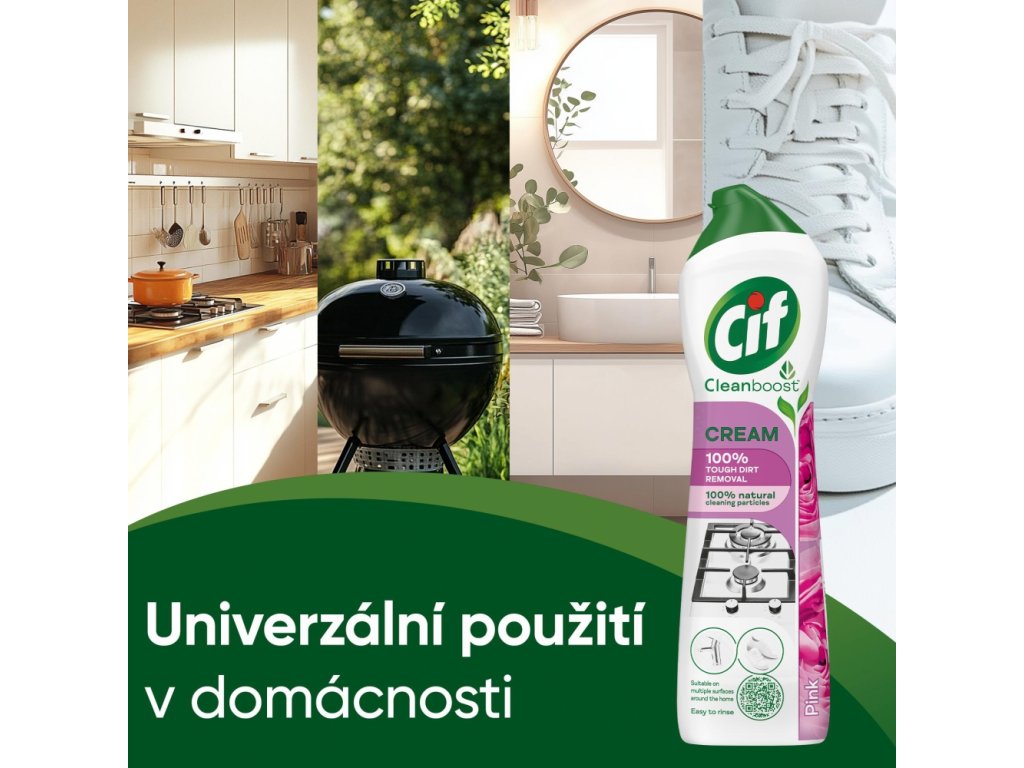 Aktivní látky přípravku proniknou hluboko do skvrn a dokážou tak odstranit i tu nejzašlejší špínu. Cif Cream Pink se hodí nejen k čištění koupelny a kuchyně, ale také na další povrchy, které by Vás jistě ani nenapadly! Pomocí Cif krému můžete obnovit vzhled staršího plastového zahradního nábytku, dětské tříkolky nebo také vyčistit zašlou bílou koženou sportovní obuv.