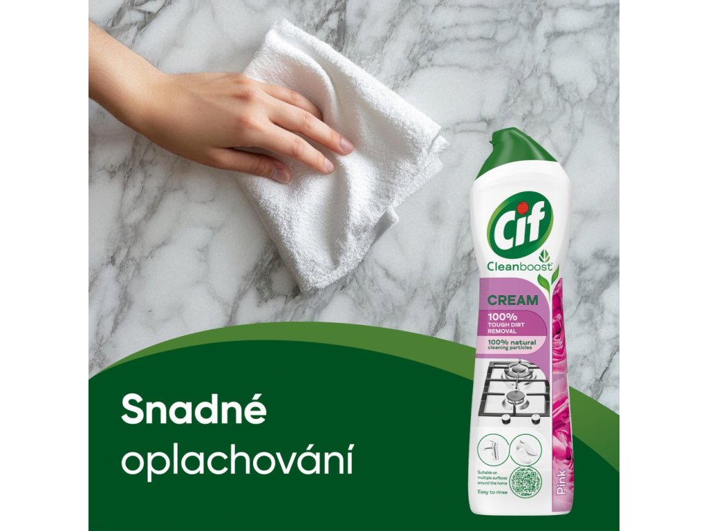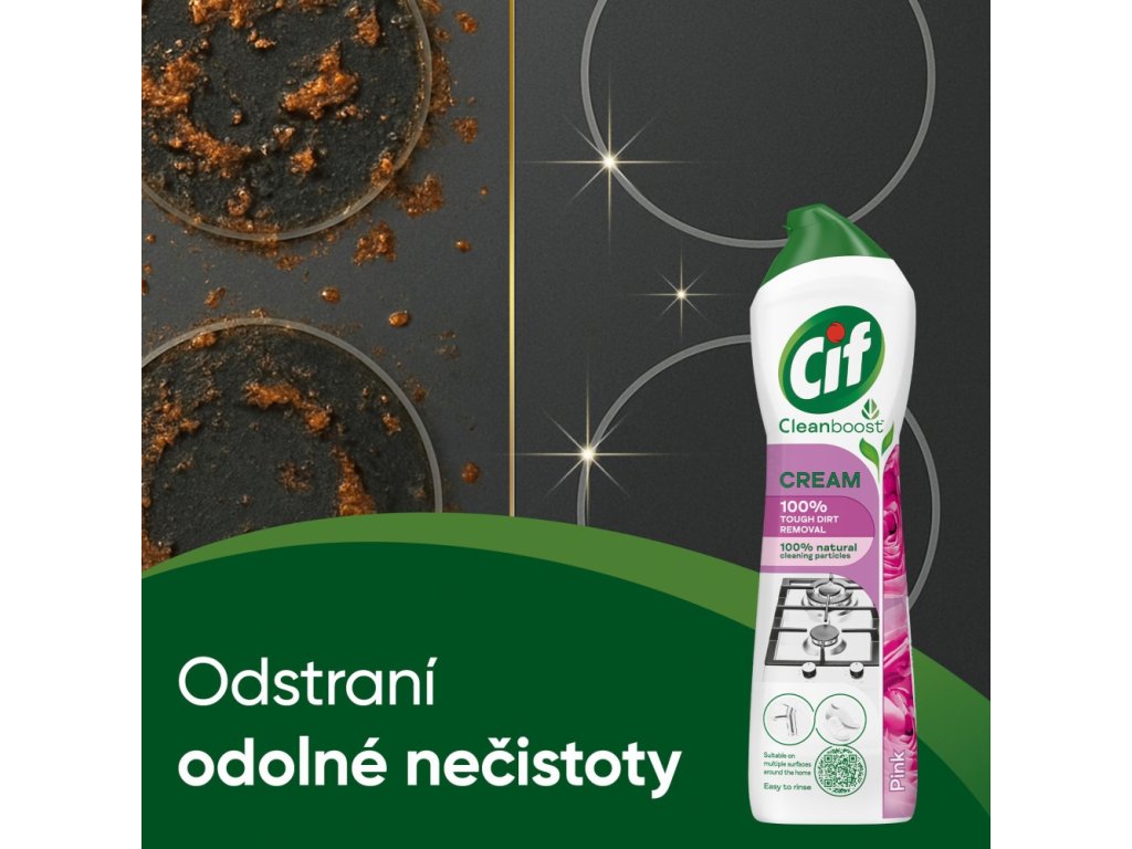 Cif Cream Pink krémový abrazivní čisticí přípravek s příjemnou květinovou vůní. Snadno uvolní nečistoty a vyčistí i zdánlivě nevyčistitelné v celém domě včetně moderních povrchů.