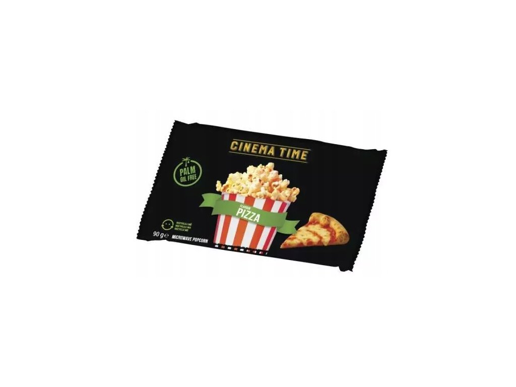 Popcorn Cinema Time Premium s příchutí pizzy je určen pro rychlou a jednoduchou přípravu v mikrovlnné troubě. Díky praktickému balení stačí sáček vložit do mikrovlnky a během několika minut si můžete vychutnat čerstvý, křupavý popcorn s výraznou slanou chutí inspirovanou pizzou. Je ideální jako pochutina při sledování filmů, seriálů nebo při posezení s přáteli.