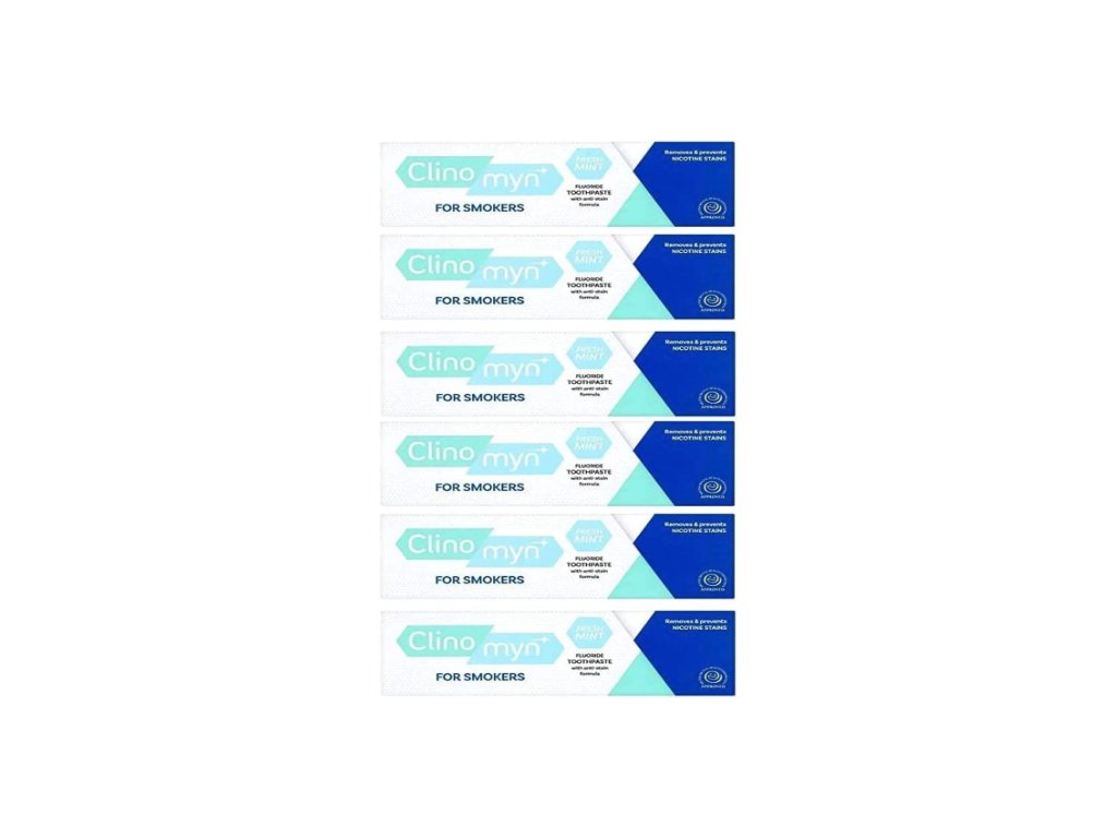 Clinomyn je kombinace zubní pasty a leštidla. Jedná se o zubní pastu, která má vyvážený poměr čisticích a lešticích částic. Po vyčištění zubů budete mít stejný pocit jako po čištění a leštění zubů u zubaře. Je ideální pro kuřáky, kterým pomáhá odstraňovat skvrny od nikotinu a tabáku. Také si poradí se skvrnami od čaje, kávy či vína. Díky obsaženému fluoridu jsou zuby chráněny před zubním kazem. Pasta má osvěžující ledovou chuť máty.