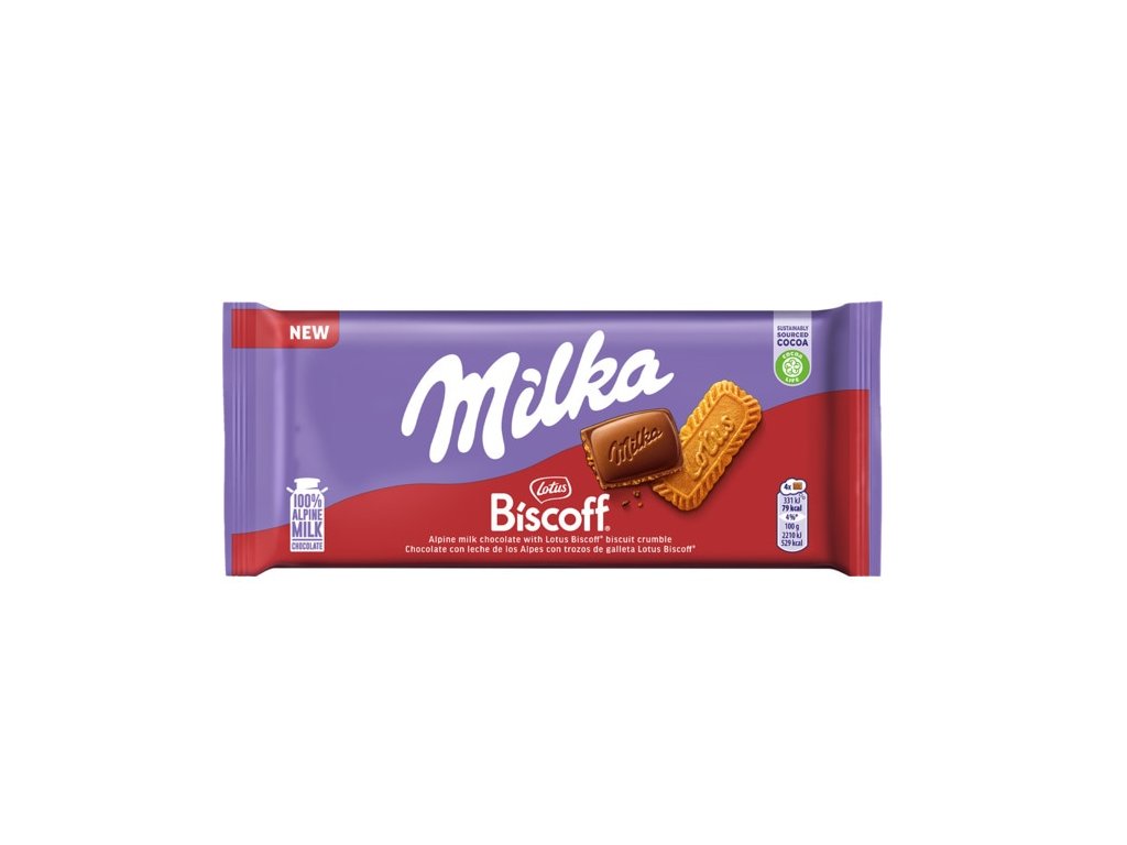 Mléčná čokoláda Milka Lotus Biscoff je sladká čokoláda s přídavkem křupavých sušenek Biscoff, která kombinuje jemnou, krémově sladkou chuť typickou pro čokoládu Milka s karamelově-skořicovým crocantem sušenek Lotus Biscoff. Tato kombinace vytváří bohatou a chutnou chuťovou zkušenost, která je ideální jako malá pochoutka nebo doplněk ke kávě či čaji.