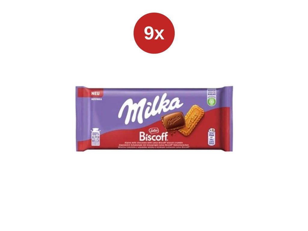 ČOKOLÁDA MLÉČNÁ MILKA LOTUS BISCOFF S SUŠENKAMI 9x90 g