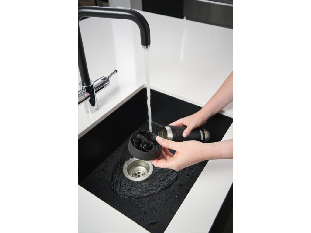 Termohrnek Contigo SNAPSEAL je navržen pro snadné pití jednou rukou. Při pití odklopte víčko (není třeba ho odšroubovávat ani sundávat) a po napití ho zaklapněte, aby se nepropustné víčko utěsnilo. Čaj nebo káva vydrží horké až 6 hodin a studené až 12 hodin díky vakuové izolaci THERMALOCK. Vyrobeno z dvouplášťové vakuově izolované 18/8 nerezové oceli. Termohrnek je navržen tak, aby se vešel do většiny držáků nápojů v autě. Víčko lze mýt v myčce nádobí v horní liště, tělo lze mýt pouze v ruce. V otevřené poloze není produkt odolný proti rozlití, proto jej doporučujeme přenášet ve svislé poloze.Doplňkové parametry