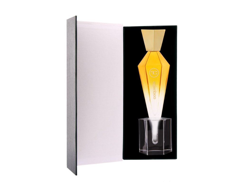 COQUETTE je zosobněním hravosti a svůdného šarmu – vůně ženy, která ví, jak zaujmout, a umí se smát očima. Úvodní exploze šťavnatých citrusů se snoubí s chladivým dotekem mentolu a ovocnými tóny, které vnesou do každého okamžiku jiskru a radost. V srdci se rozlévá průzračná čistota vodních akordů, jemný květ jasmínu a svěží zelené tóny – jako lehký letní vánek na břehu moře. Základ je hřejivý a svůdný: cedrové dřevo dodává eleganci, labdanum smyslnou hloubku a sladká vanilka jemně uzavírá tento okouzlující příběh. COQUETTE není jen parfém, ale prohlášení – o radosti ze života, o ženské sebejistotě a o touze zanechat nezapomenutelnou stopu. Typ vůně: Osvěžující květinově-dřevitá s vodními akcenty Hlava: citrus, mentol, ovocné tóny Srdce: vodní akordy, jasmín, zelené tóny Základ: cedr, labdanum, vanilka Flakon: Elegantní flakon s rozprašovacím aplikátorem, zasazený do stojánku z přírodní čiré pryskyřice, je skutečným klenotem toaletního stolku.Doplňkové parametry