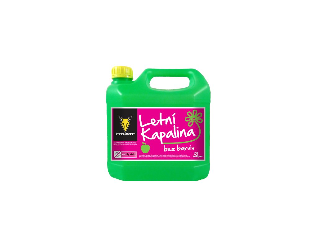 COYOTE - Letní kapalina jablko 3 l - Velmi účinná kapalina do ostřikovačů automobilů. Odstraňuje nečistoty a zbytky hmyzu. Příjemná a svěží jablečná vůně.Doplňkové parametry