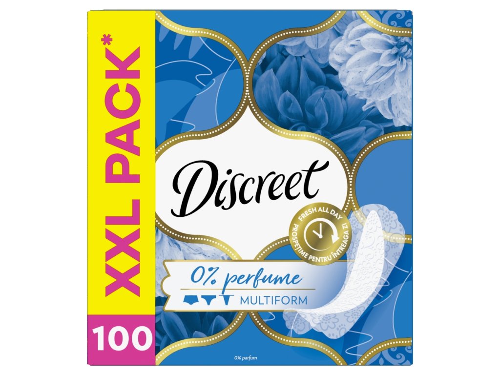 Intimky Discreet Air Multiform jsou tou pravou volbou pro každodenní ochranu. Tyto neparfémované intimky vynikají extra tenkým (tenčí než 1mm) a flexibilním provedením, takže se snadno přizpůsobí každému tvaru dámských kalhotek. Díky speciálním prodyšným zónám zaručují pocit svěžesti po dobu dvanácti hodin. Pro pocit čistoty a svěžesti 365 dní v roce.