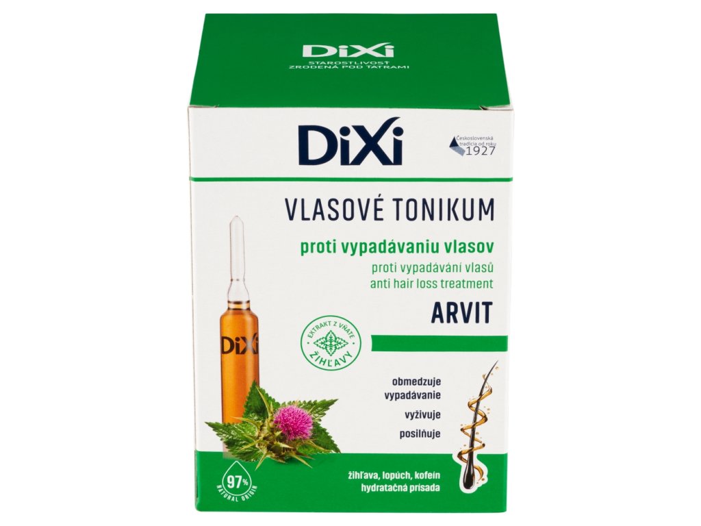 Dixi Arvit provitamin B5 Lihový přípravek obsahující rostlinný extrakt obohacený provitamínem B5. Provitamín B5 (pantenol) v kombinaci s účinnou látkou phytantriol proniká hluboko do vlasové pokožky a vyživuje přímo vlasové kořínky. Používá se na mastné vlasy a brání jejich vypadávání. Obsah ampulky se pomalu vtírá do vlasů, přičemž se vlasová pokožka masíruje konečky prstů. Masáží dosáhneme lepšího prokrvení pokožky a tím i rychlejšího vstřebávání výživných látek.