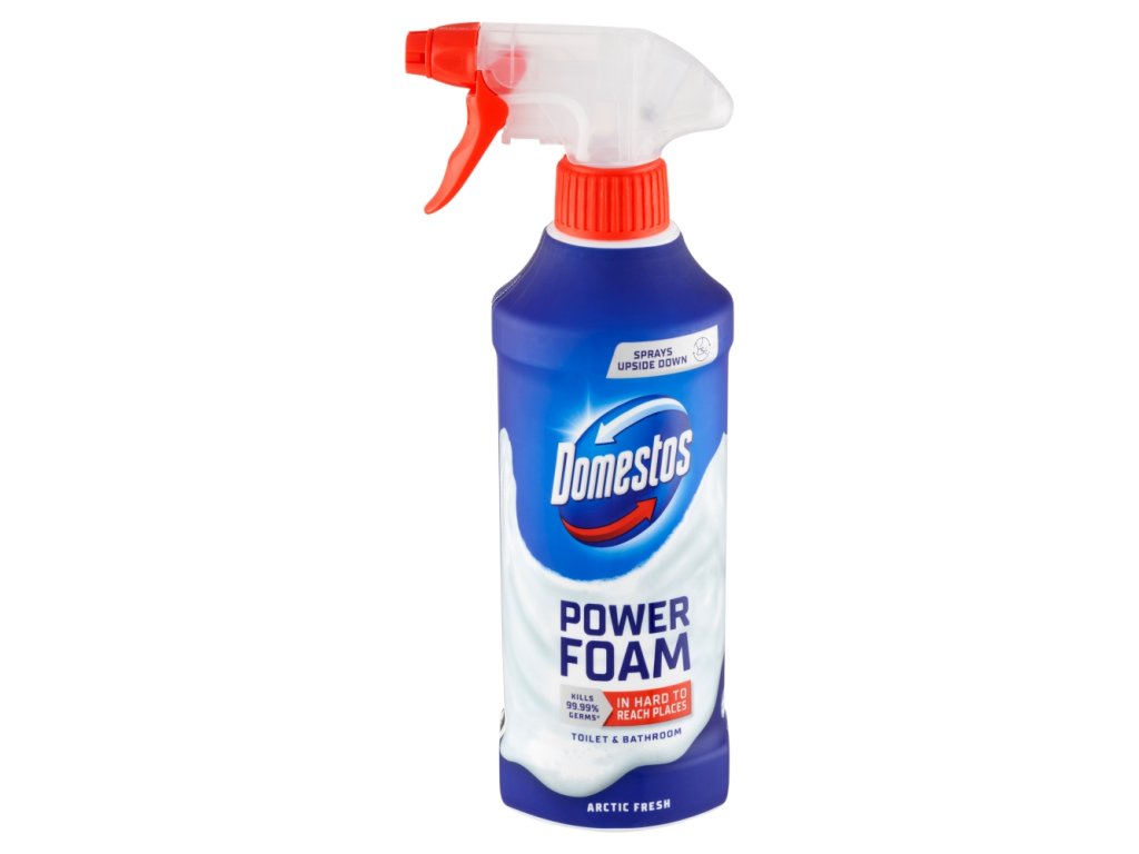 Domestos Power Foam Arctic Pěnový čistič toalet a koupelen 435 ml Pěna ve spreji Domestos Power Foam přináší pohodlnější a efektivnější čištění toalety v úplně nové revoluční formě. Speciálně vyvinutý rozprašovač zbaví vaši toaletu virů a bakterií i na těžko dostupných místech.