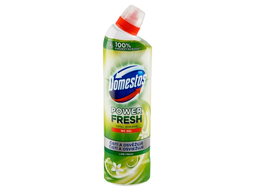 Domestos Power Fresh je gelový dezinfekční přípravek určený k odstraňování vodního kamene v toaletě. Přilne k povrchu toaletní mísy, kde působí dlouhou dobu, a to dokonce i pod vodní hladinou.