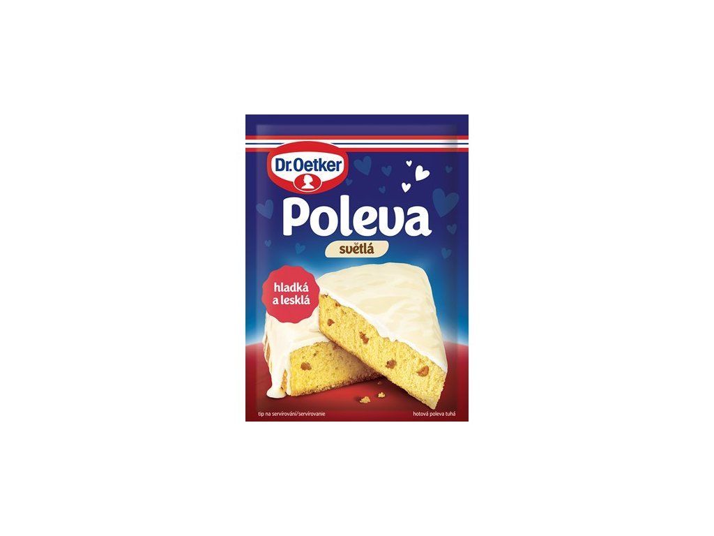Poleva světlá. Hotová cukrářská poleva tuhá na zdobení dortů, zákusků a jiných moučníků.Doplňkové parametry