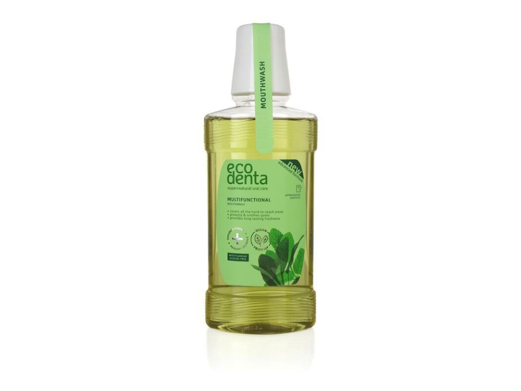 Ústní voda Ústní voda Ecodenta obsahuje mátový olej, extrakt ze šalvěje a aloe vera. Mátový olej zabezpečuje dlouhotrvající svěžest, extrakty ze šalvěje a aloe vera uklidňují a chrání dáseň. Ústní voda doplňuje každodenní čištění zubů a zabezpečuje lepší ochranu před zubním kamenem. Pasta obsahuje 95% složek přírodního původu. Je veganská, bez alkoholu a obsahuje fluoridy. Testováno zubními lékaři. Použití: Ústa vyplachujte asi 2 minuty po každém vyčištění zubů nebo po jídle. Nepolykejte. Po použití není nutné si ústa vypláchnout čistou vodou. Děti do 6 let: Použijte množství velikosti hrášku pod dohledem dospělé osoby, aby se minimalizovalo riziko spolknutí. Pokud je fluorid přijímaný z jiných zdrojů, konzultujte se svým zubařem nebo všeobecným lékařem.Doplňkové parametry