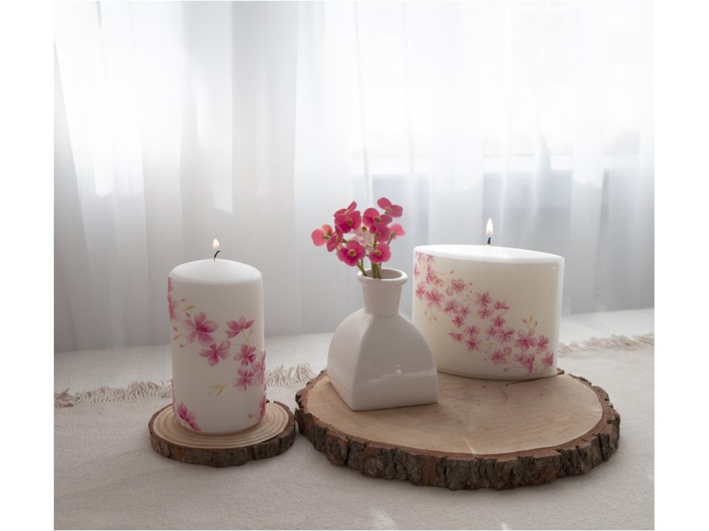 Svíčka v elipsovém tvaru s květinovým motivem je krásným doplňkem pro každou příležitost. Její rozměry jsou 115x53x100 mm.Doplňkové parametry