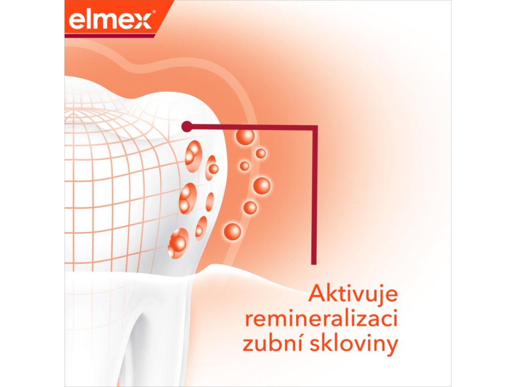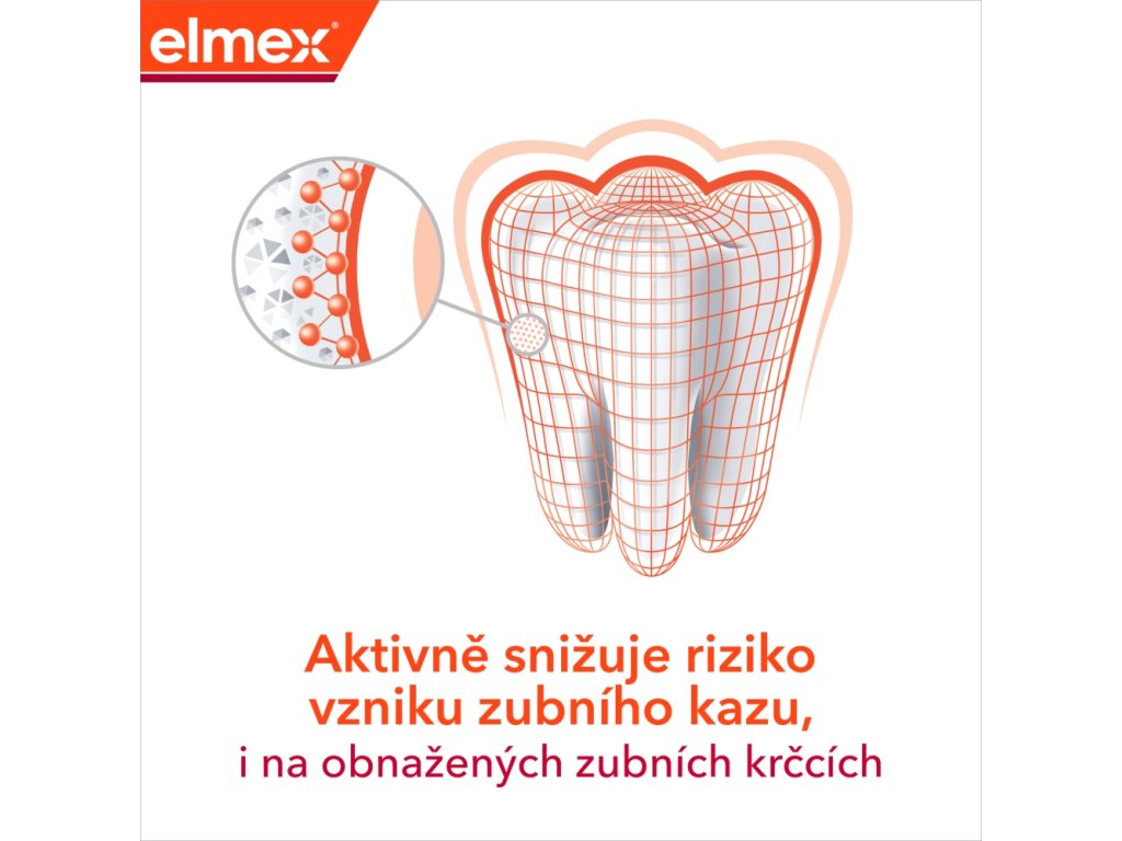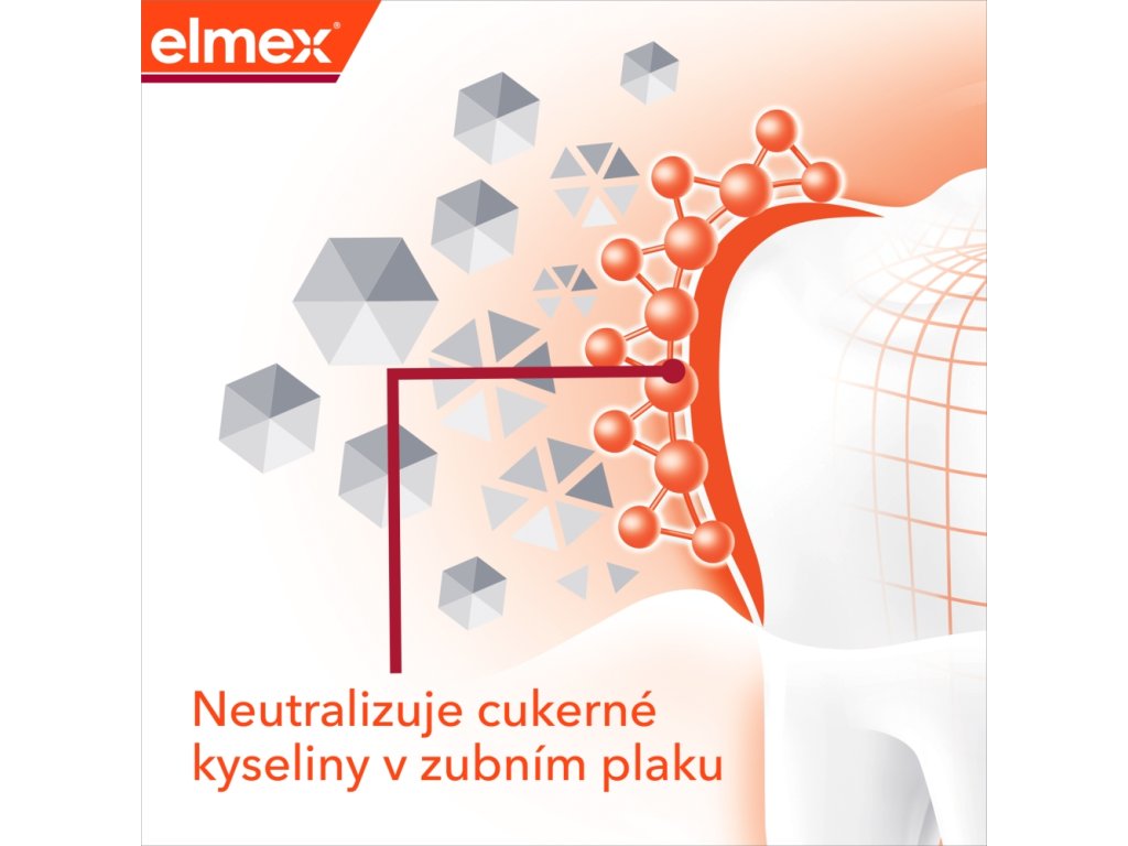 Elmex Anti-caries obsahuje: Calcium Carbonate, Aqua, Glycerin, Sodium Lauryl Sulfate, Arginine, Sodium Monofluorophosphate, Aroma, Cellulose Gum, Sodium Bicarbonate, Tetrasodium Pyrophosphate, Benzyl Alcohol, Sodium Saccharin, Sodium Hydroxide, CI 77891.