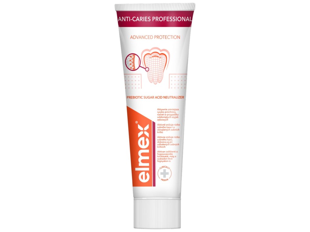 Zubní pasta Elmex Anti-caries professional obsahuje jedinečnou technologii neutralizace cukerných kyselin, která přímo bojuje proti cukerným kyselinám obsaženým v plaku - hlavní příčině zubního kazu. V kombinaci s fluoridem a vápníkem jsou zuby remineralizovány 4 x účinněji - pro silné a odolné zuby.