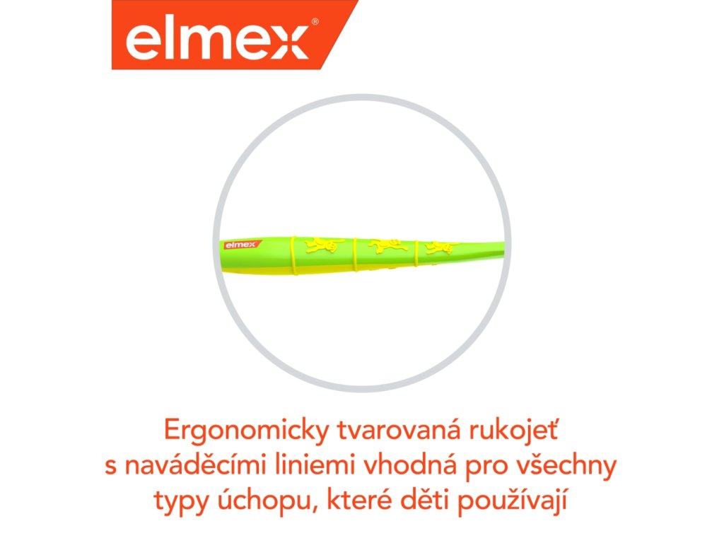 Dětský zubní kartáček pro snadnější čištění zubů v období výměny chrupu. Speciální prodloužená X vlákna, navržená tak, aby pronikly hluboko do mezizubních prostor a účinněji odstranily plak. Měkká, zaoblená vlákna čistí zuby důkladně a jemně, malá čisticí hlava kartáčku usnadňuje čištění obtížně dosažitelných nových stoliček, ergonomicky tvarovaná, neklouzavá rukojeť se zarážkou pro palec zajišťuje kontrolovanou a stabilní manipulaci.