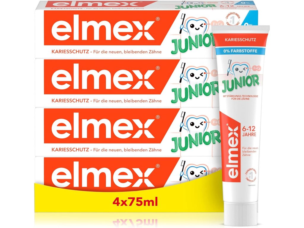 Elmex Junior fluoridová zubní pasta je uzpůsobena pro potřeby nově se prořezávajících stálých zubů a díky věkově přizpůsobenému obsahu fluoridu poskytuje účinnou ochranu před vznikem zubního kazu. Elmex Junior fluoridovázubní pasta má příjemnou chuť, která motivuje děti k pravidelnému čištění.