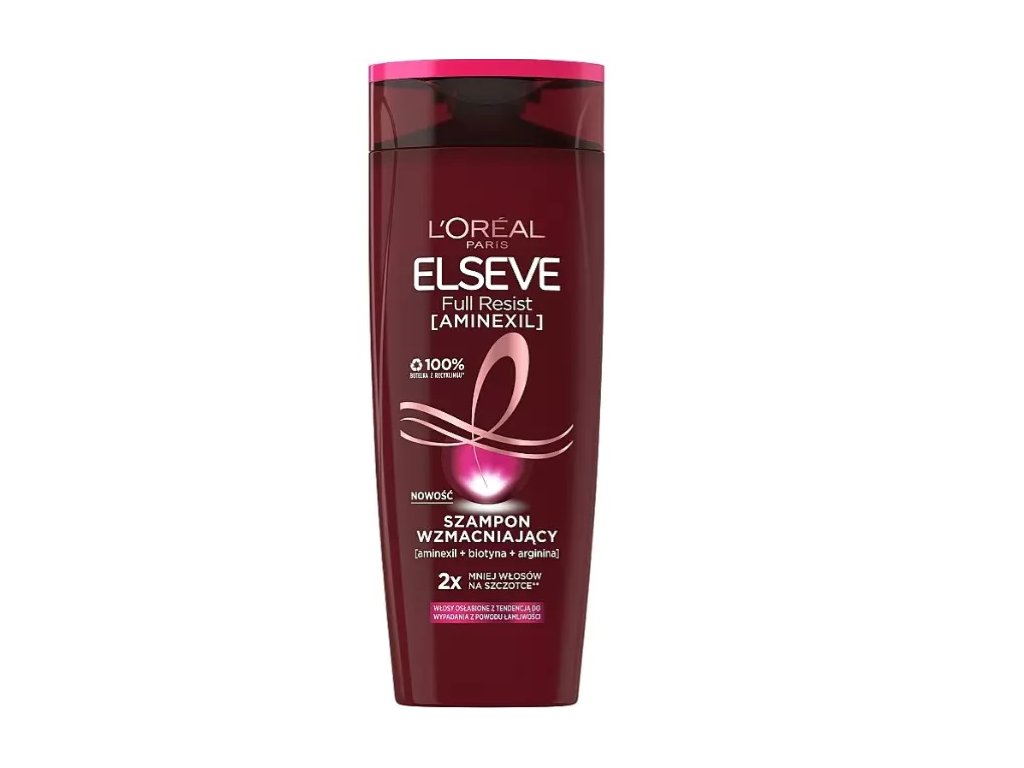 Posilující šampón pro slabé vlasy s tendencí vypadávat L'Oréal Paris Elseve Full Resist, vyživuje je již od kořínků. Inovované složení je obohacené o Aminexil a výživné složky pro vlasy jako je biotin a arginin, představuje tak ideální kombinaci aktívnich látek pro posílení oslabených vlasů.