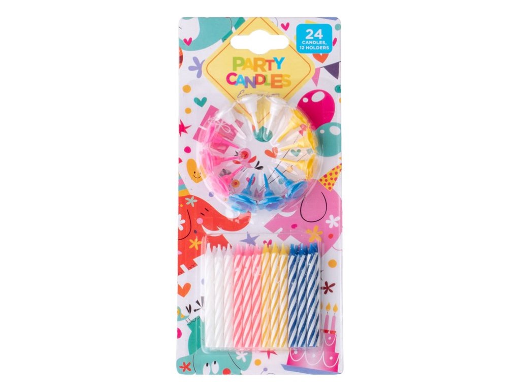 Emocio dortové svíčky 24 ks 60 mm + 12 ks spirálových svícnů – mix barev