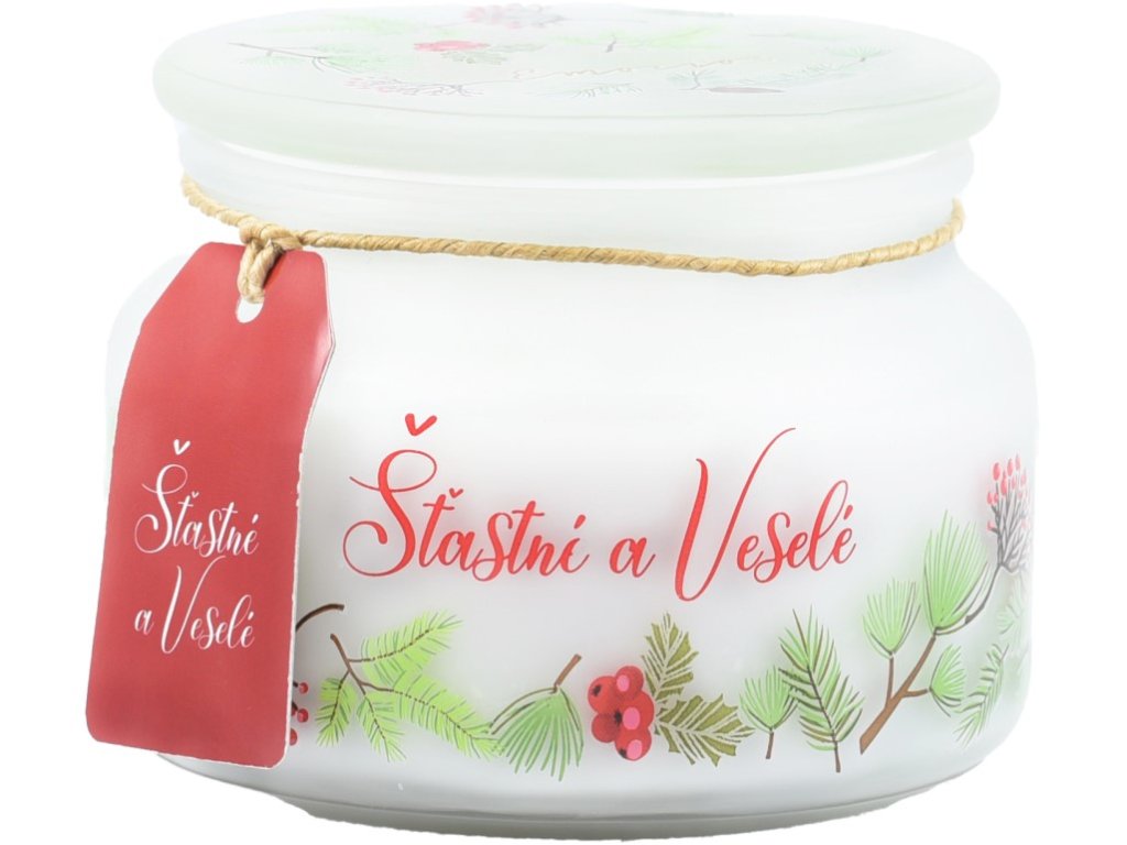 Emocio Vonná svíčka ve skle Šťastné a veselé 100×79 mm se skleněným víčkem