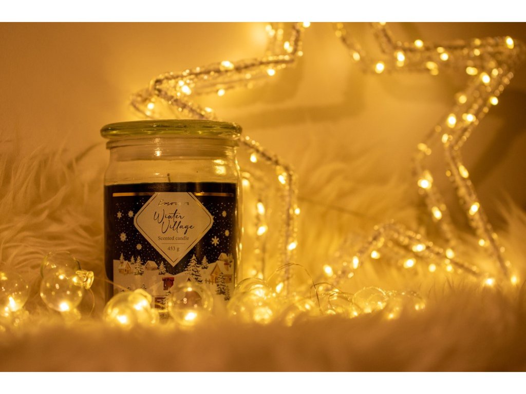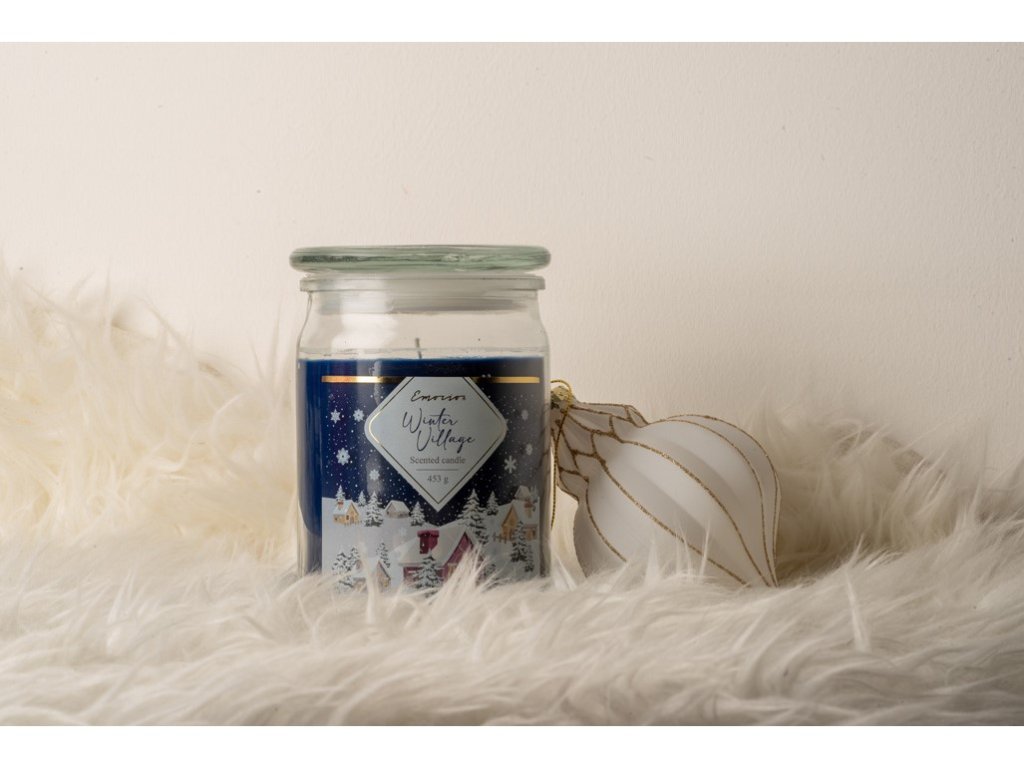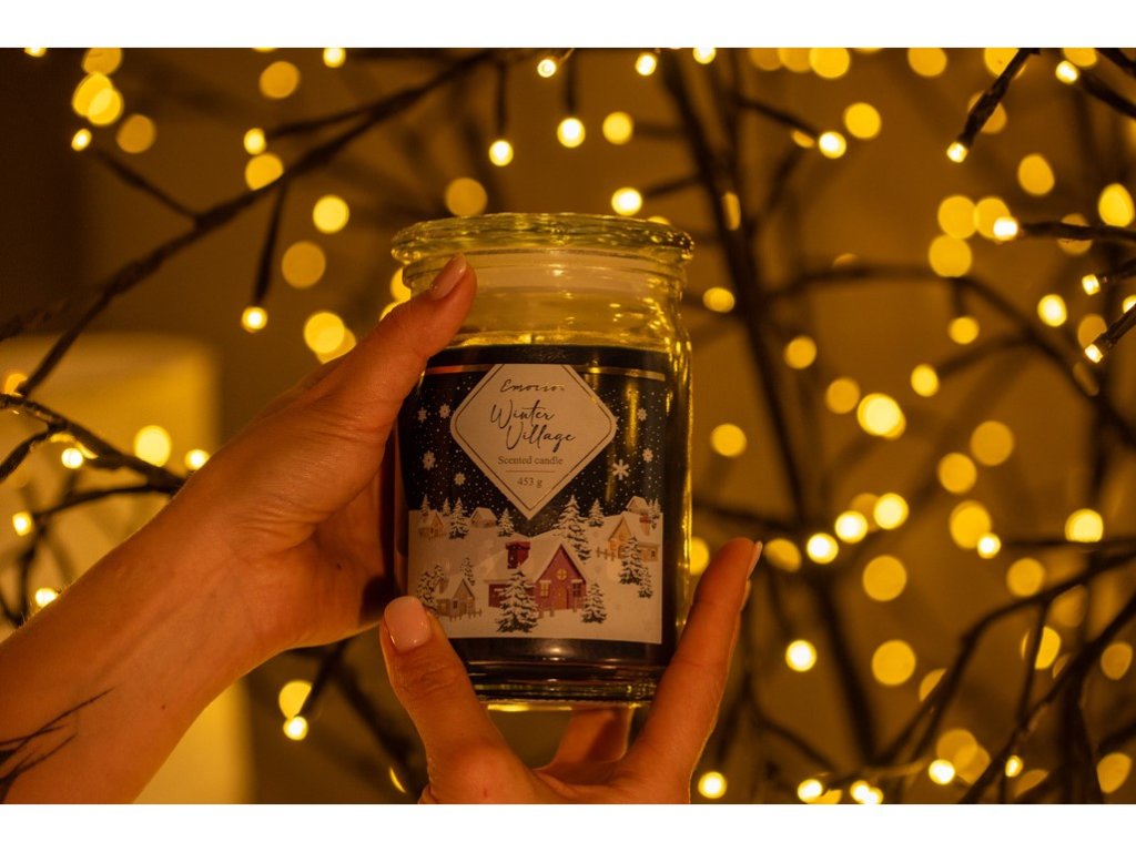Emocio Winter Village – vonná svíčka ve skle 93×142 mm se skleněným víčkem