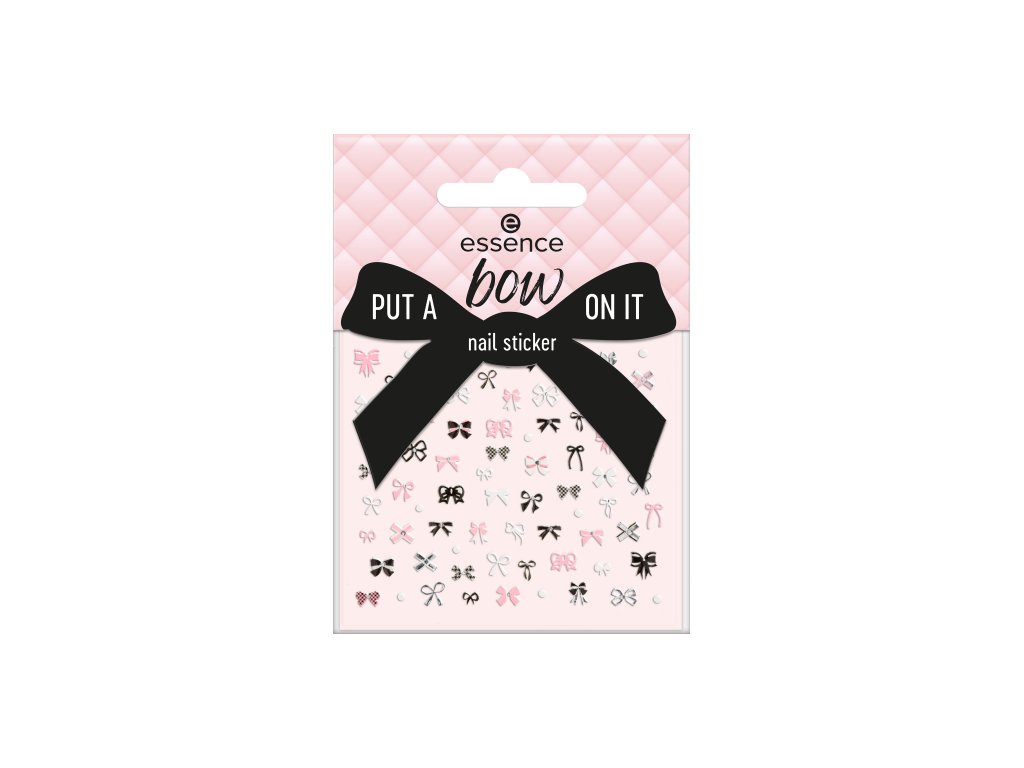 Nálepky na nehty · nepřehlédnutelné nálepky na nehty s roztomilými mašličkami · vyberte si z různých okouzlujících stylů mašliček nebo zvolte perličky a kamínky · naneste na čisté nehty nebo zaschlý essence lak na nehty a zafixujte pomocí krycího laku · balení s 95% recyklovaného papíruDoplňkové parametry