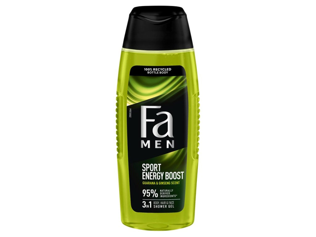 Zažijte dlouhotrvající svěžest sprchového gelu Fa Men Sport Energy Boost s povzbuzující vůní guarany a ženšenu.