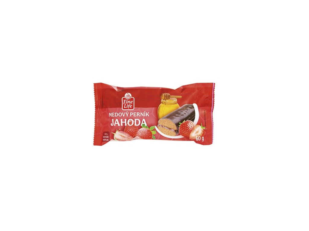 Medový perník s ovocnou náplní s jahodami v tmavé tukové polevě.Doplňkové parametry
