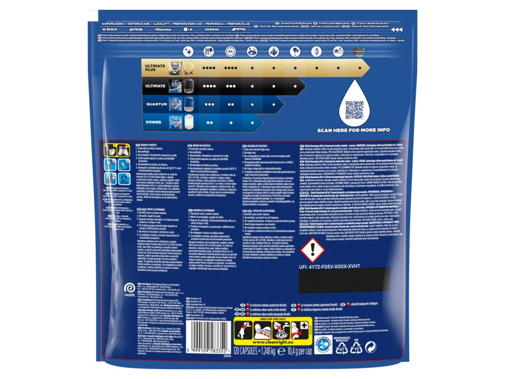 Finish Quantum si poradí se vším, co mu přijde do cesty. Jeho účinné složení s PowerBall zaručuje nejlepší čistotu a lesk pro vaše nádobí a navíc pomáhá chránit proti usazování vodního kamene ve vaší myčce.