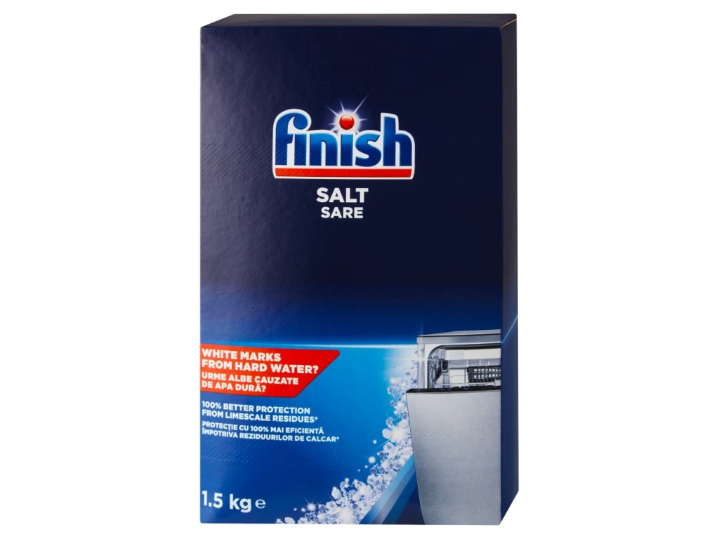 Účinně napomáhá změkčení vody v myčce a zvyšuje tak čisticí efekt mycích prostředků. Pro dosažení nejlepších výsledků pravidelně kontrolujte správné množství regenerační soli Finish ve Vaší myčce. To je silně doporučeno, pokud máte tvrdou vodu ve Vaší domácnosti.