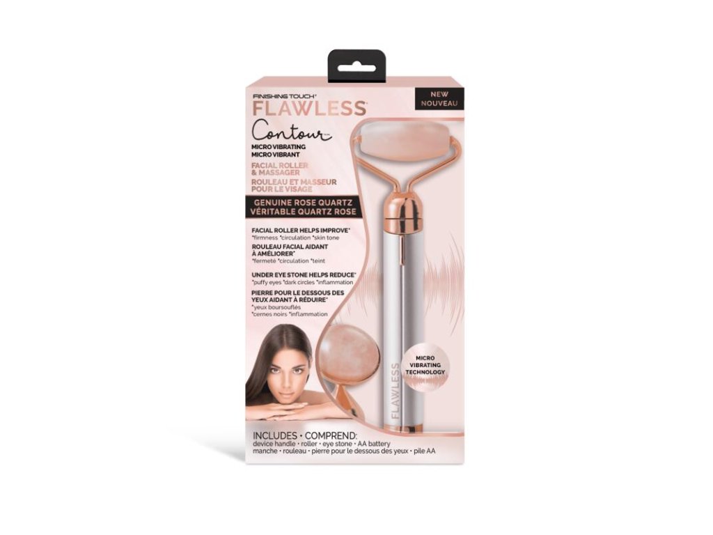 Podporuje pružnost a pevnost pleti Masážní váleček na obličej Flawless Contour. Stimuluje krevní oběh a tvorbu kolagenu, napomáhá redukovat otoky a tmavé kruhy pod očima, eliminuje tvorbu předčasných vrásek a zlepšuje celkovou pružnost a pevnost pleti. Jemné vibrace ještě znásobí masážní účinek. Po použití je pokožka krásně prokrvená, rozjasněná a vyhlazená. Použití: Pro dosažení nejlepších výsledků naneste na obličej nejdříve krém nebo sérum proti vráskám. Díky válečku na obličej tak zajistíte i lepší vstřebatelnost. Posunutím nahoru do pozice ON zapnete vibrace. Začněte u krku a postupujte směrem nahoru a ven ze středu obličeje. Tahy válečkem provádějte pouze směrem nahoru. Opakujte v každé části obličeje 3x – 4x a poté se přesuňte na další část. Pro očištění sejměte hlavici z rukojeti a otřete hadříkem.Doplňkové parametry