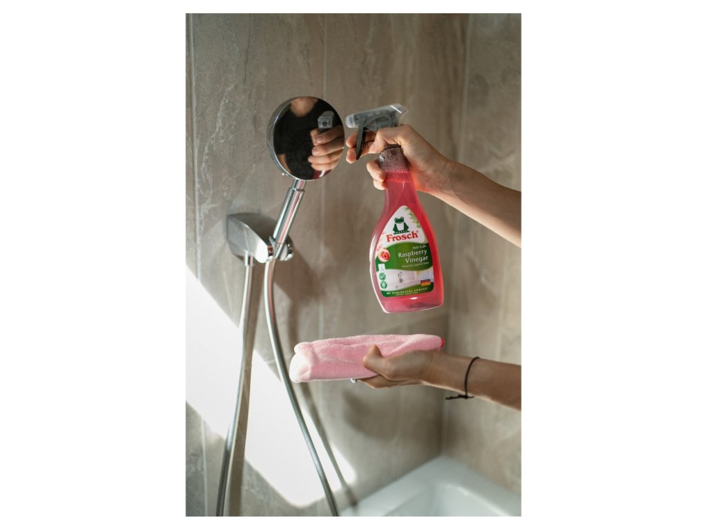Přichází ekologický čistič vhodný zejména do vaší koupelny. Šetrně, přesto účinně vyčistí plochy, jakou jsou umyvadla, vany, armatury ale i kachličky. Prostřdek obsahuje přírodní složky a složku malinového octa, která vysoce účinně odstraňuje nečistoty, vápenaté usazeniny ale i vodní kámen. Čistí šetrně, ale efektivně. Vaše koupelna bude provoněná svěžestí malin. Vhodný pro všechny milovníky přírody.